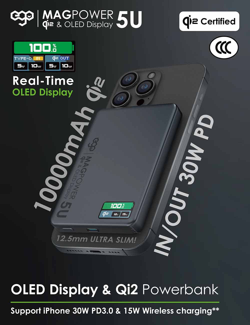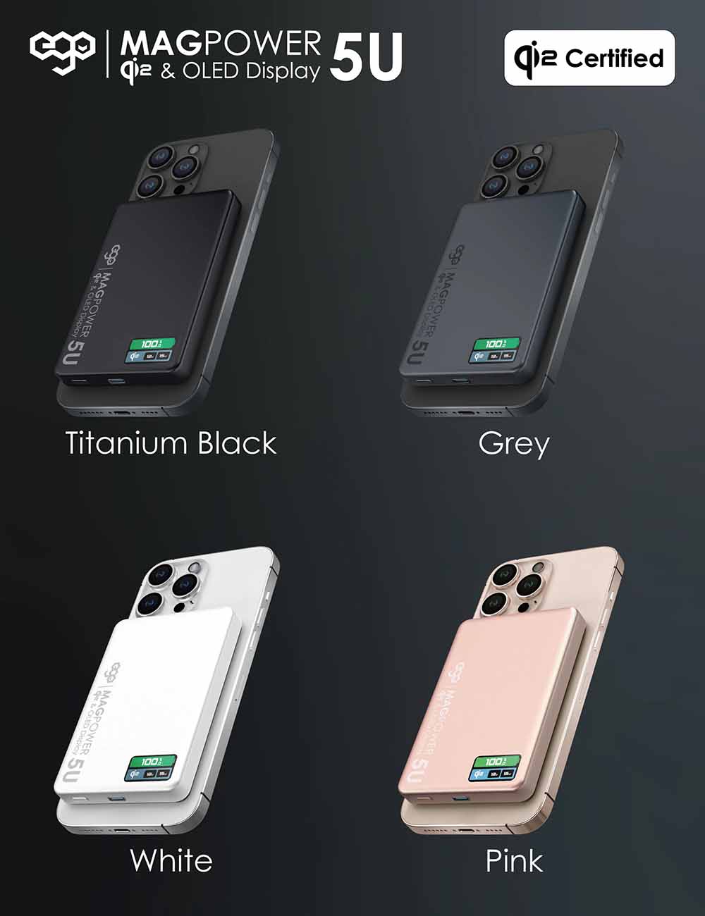 بطارية EGO Magpower المغناطيسية الجيل 5 / سعة 5 الاف mAh / تدعم MagSafe / نحيفة جداً / تيتانيوم