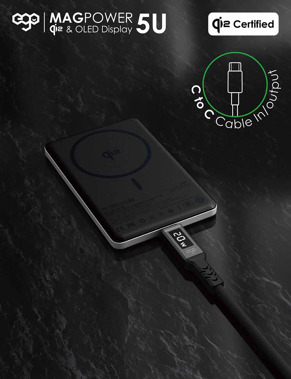 بطارية EGO Magpower جيل 5 المغناطيسية / سعة 10 الاف mAh / تدعم MagSafe / اسود
