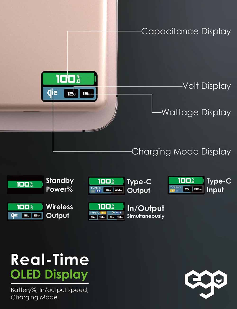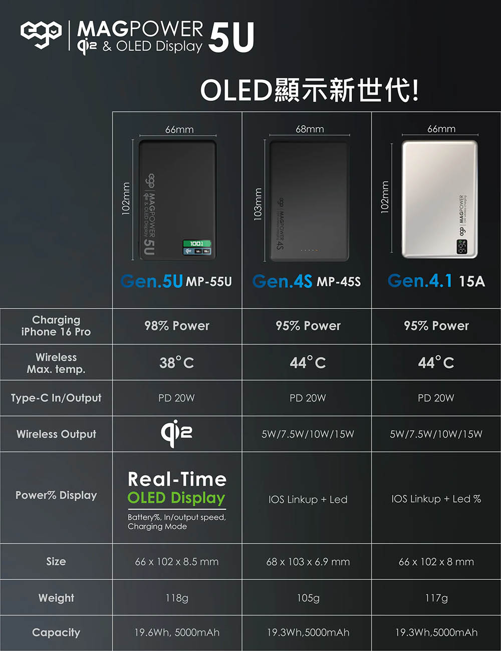بطارية EGO Magpower المغناطيسية الجيل 5 / سعة 5 الاف mAh / تدعم MagSafe / نحيفة جداً / تيتانيوم