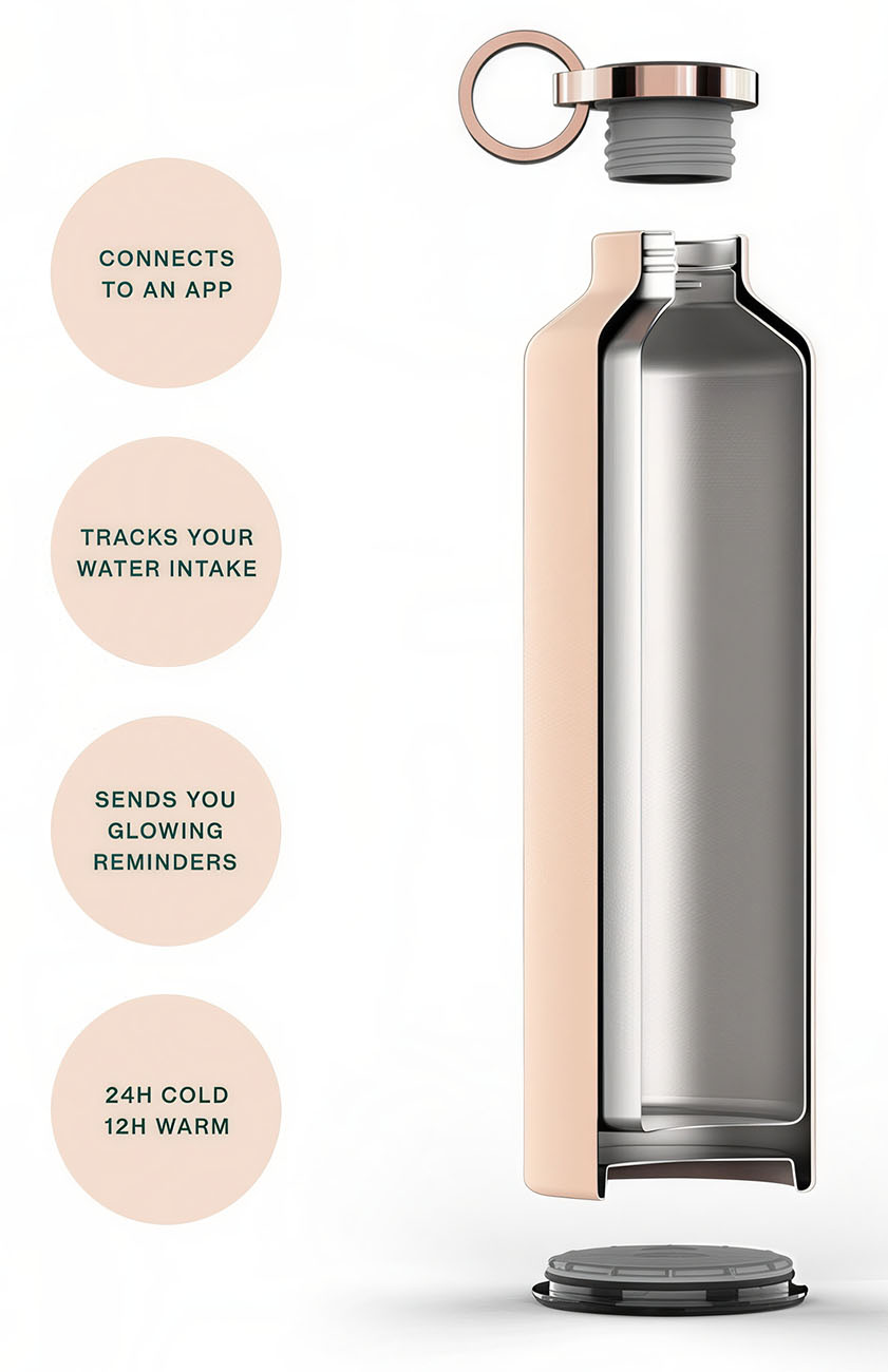 المميز في هذي المطارة تصميمها المبتكر .. فيها ليت LED في قاعدة المطارة يضيء عند تذكيرك بشرب الماء.