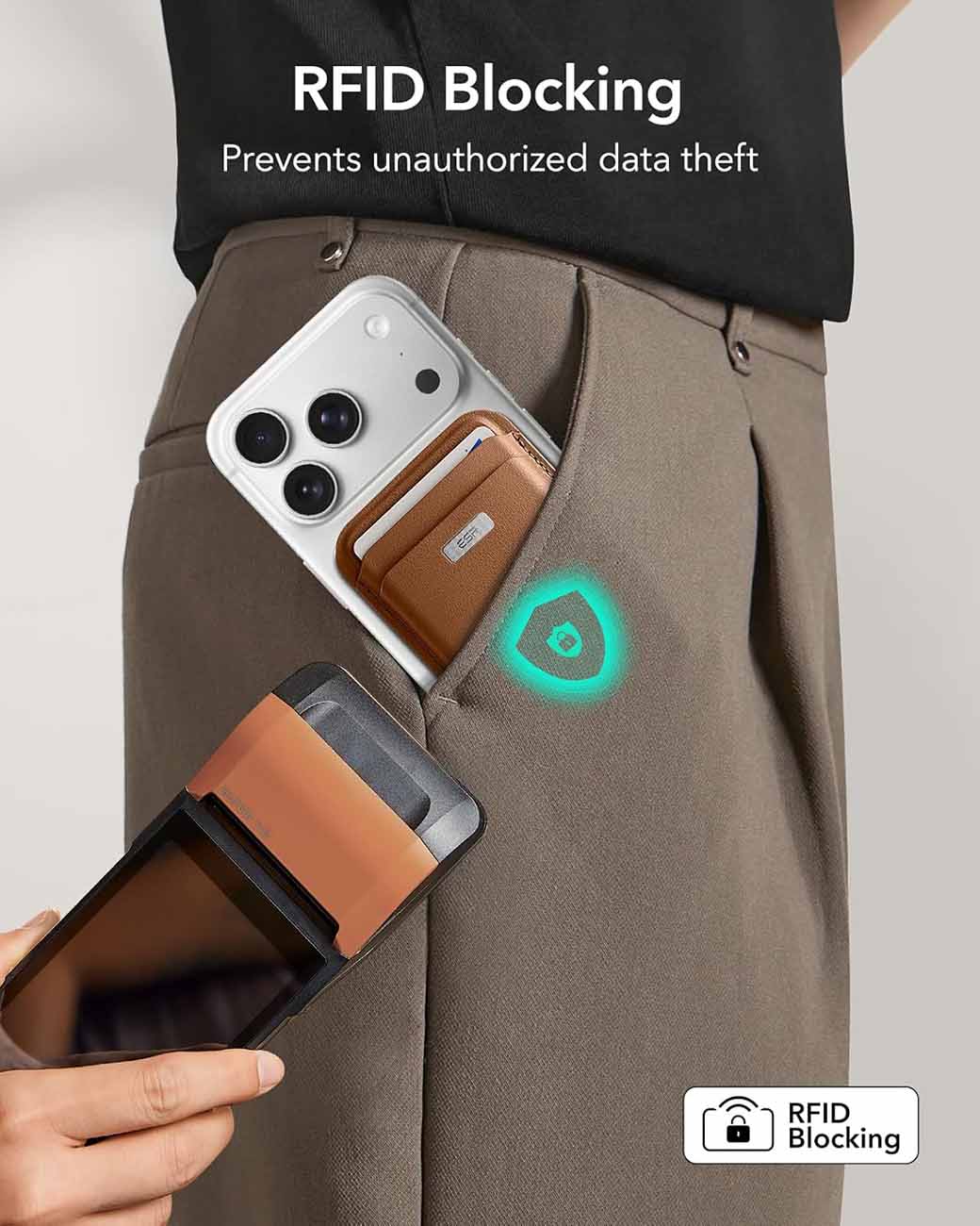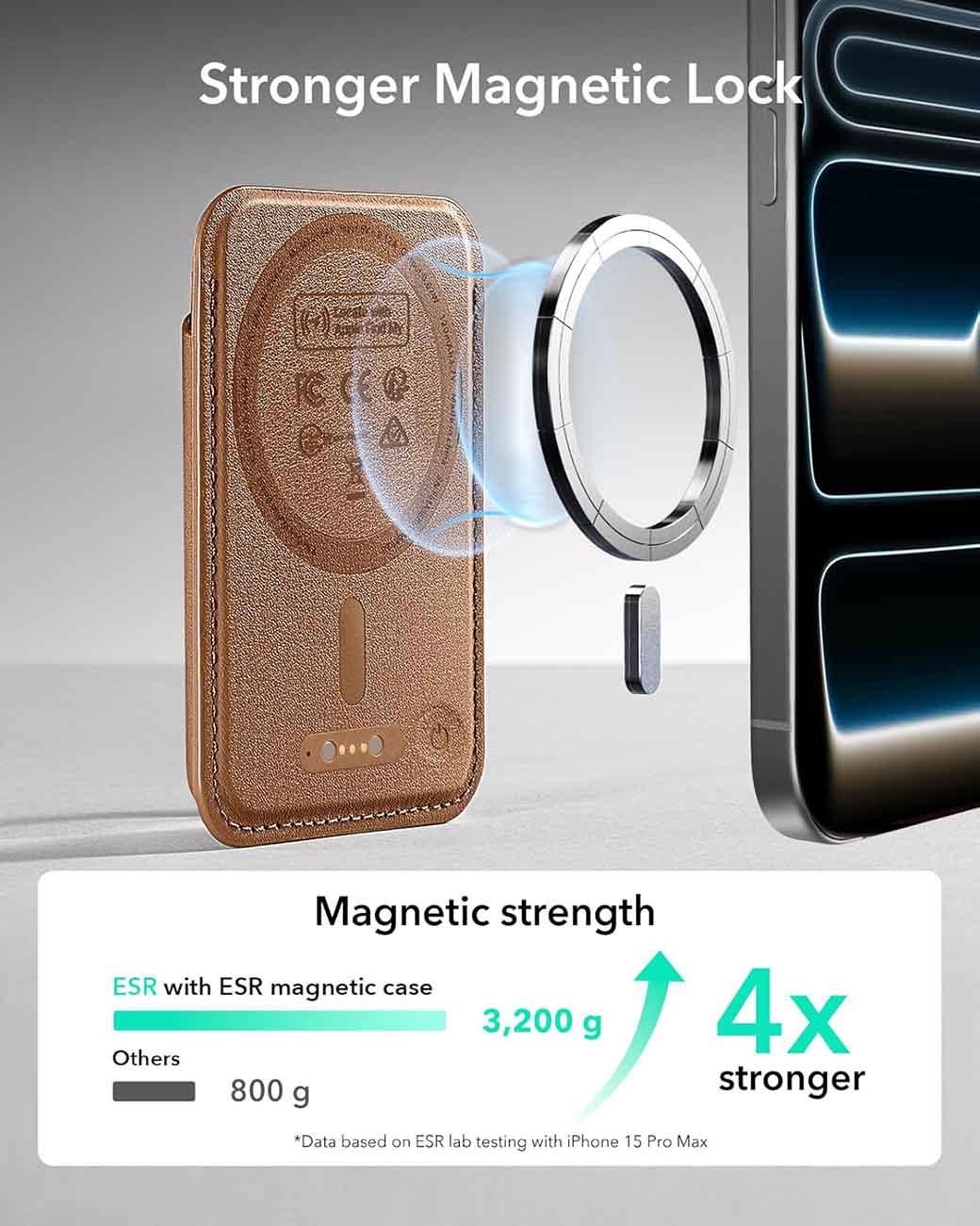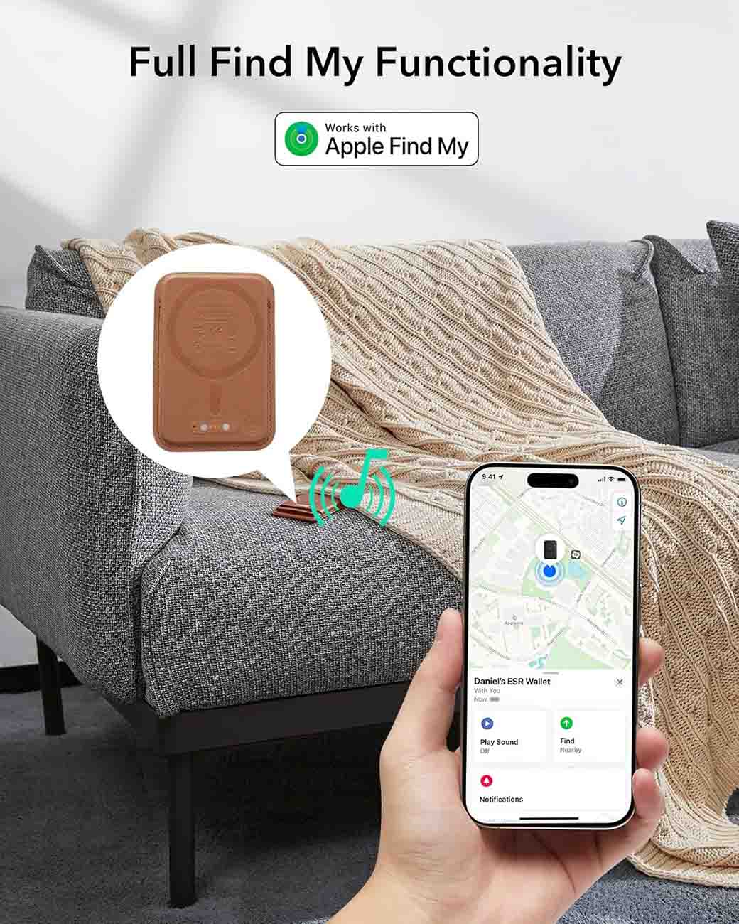 بووك ESR Classic Geo الذكي / يدعم MagSafe + ميزة ابل Find My / حماية RFID / بني