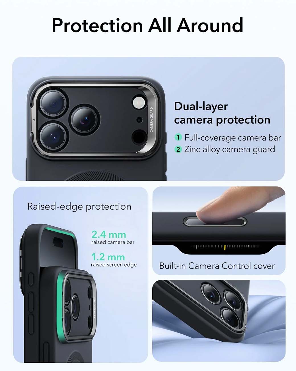 كفر ESR لايفون 17 برو ماكس / مع ستاند مدمج / يدعم MagSafe / سليكون / اسود