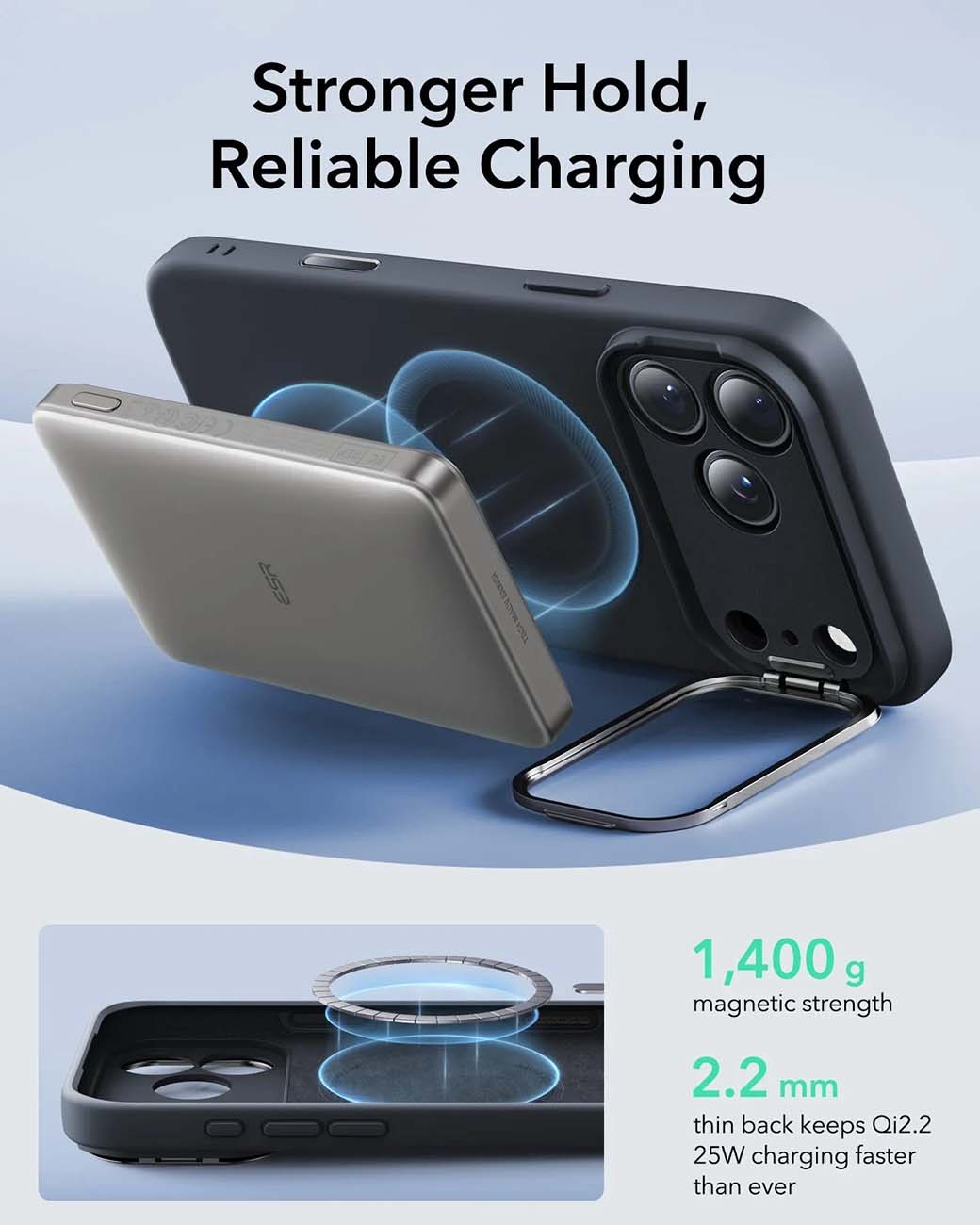 كفر ESR لايفون 17 برو / مع ستاند مدمج / يدعم MagSafe / ضد الطيحات / شفاف