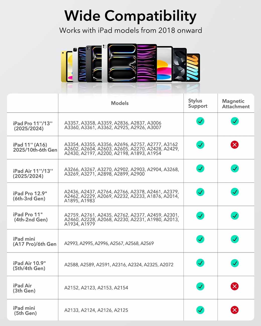 ملاحظة: القلم يدعم كل اصدارات الايباد من سنة 2018 فما بعد.