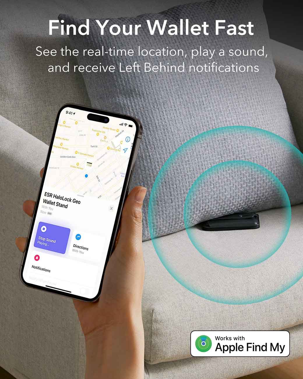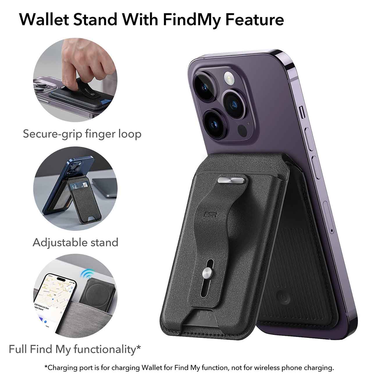 بووك ESR Classic Geo الذكي / يدعم MagSafe + ميزة ابل Find My / حماية RFID / اسود