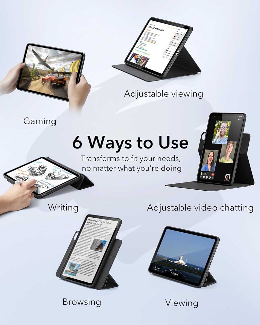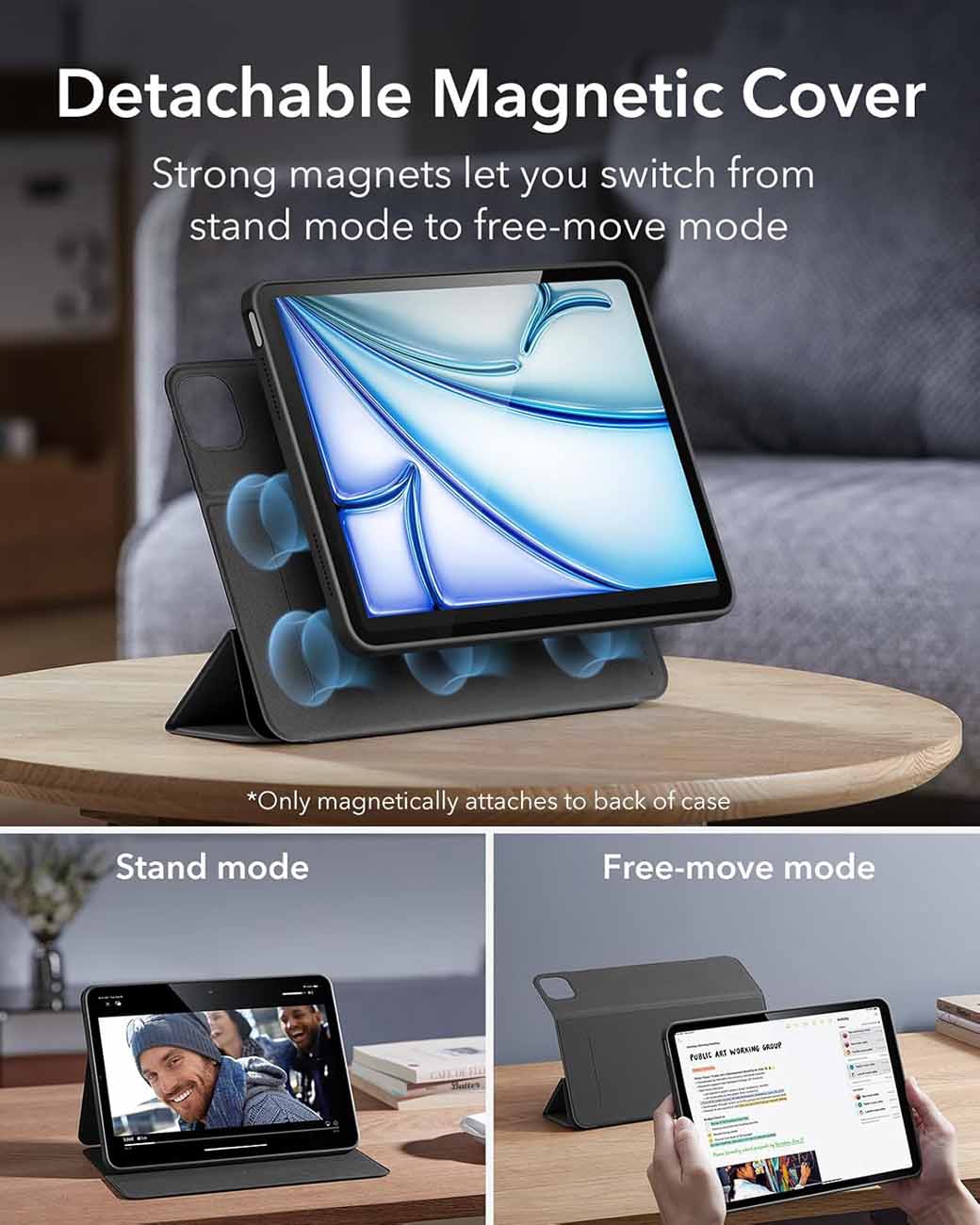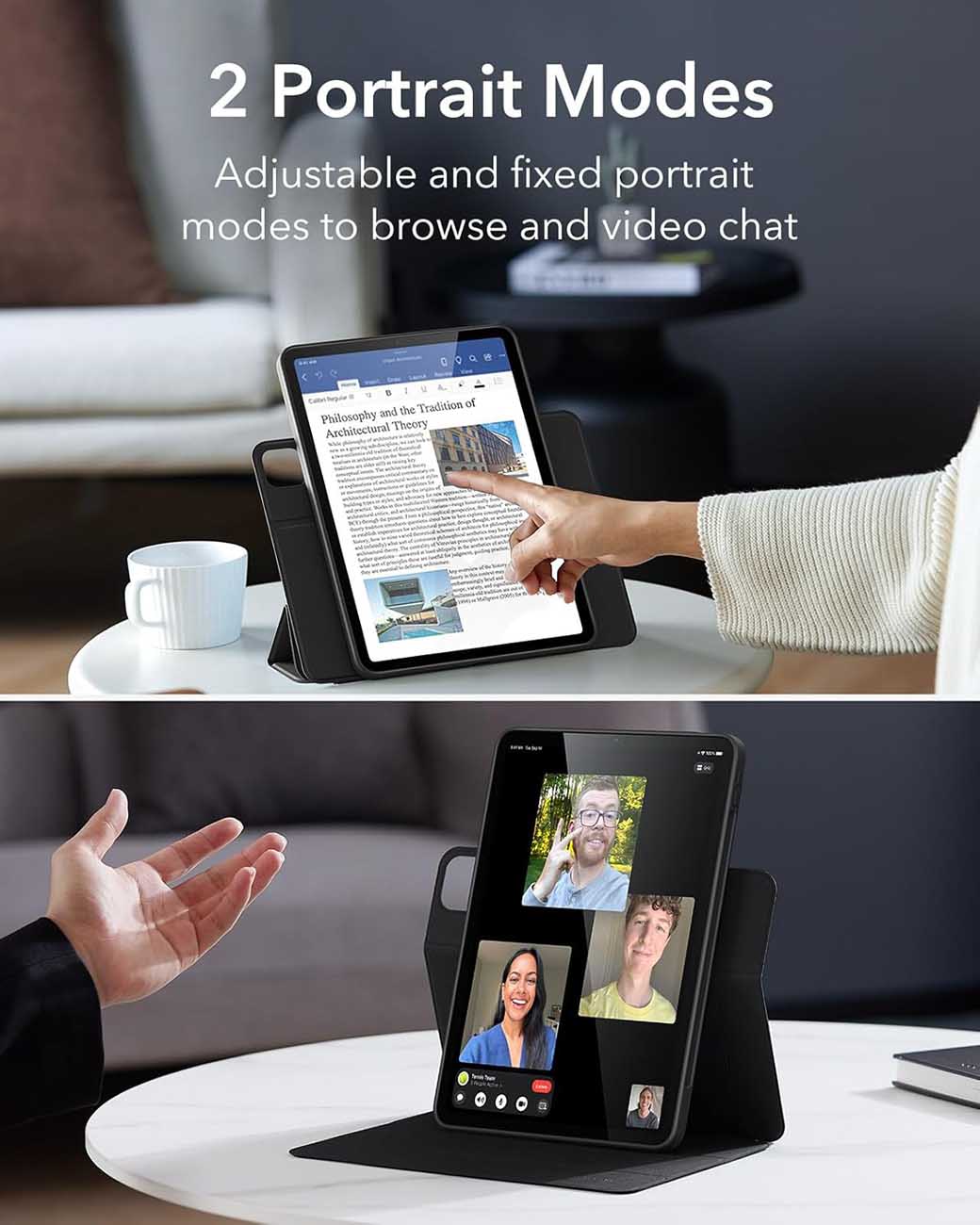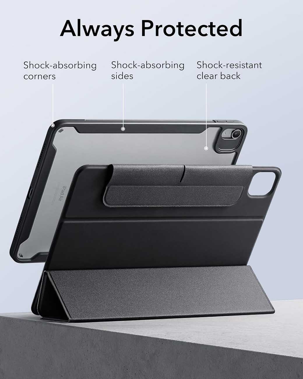 كفر ESR لايباد اير 11 انش 2025 و ايباد اير 10.9 انش / ستاند مدمج / ضد الطيحات / اسود
