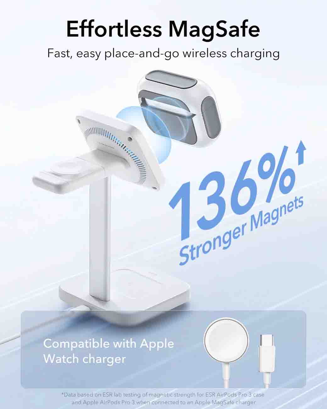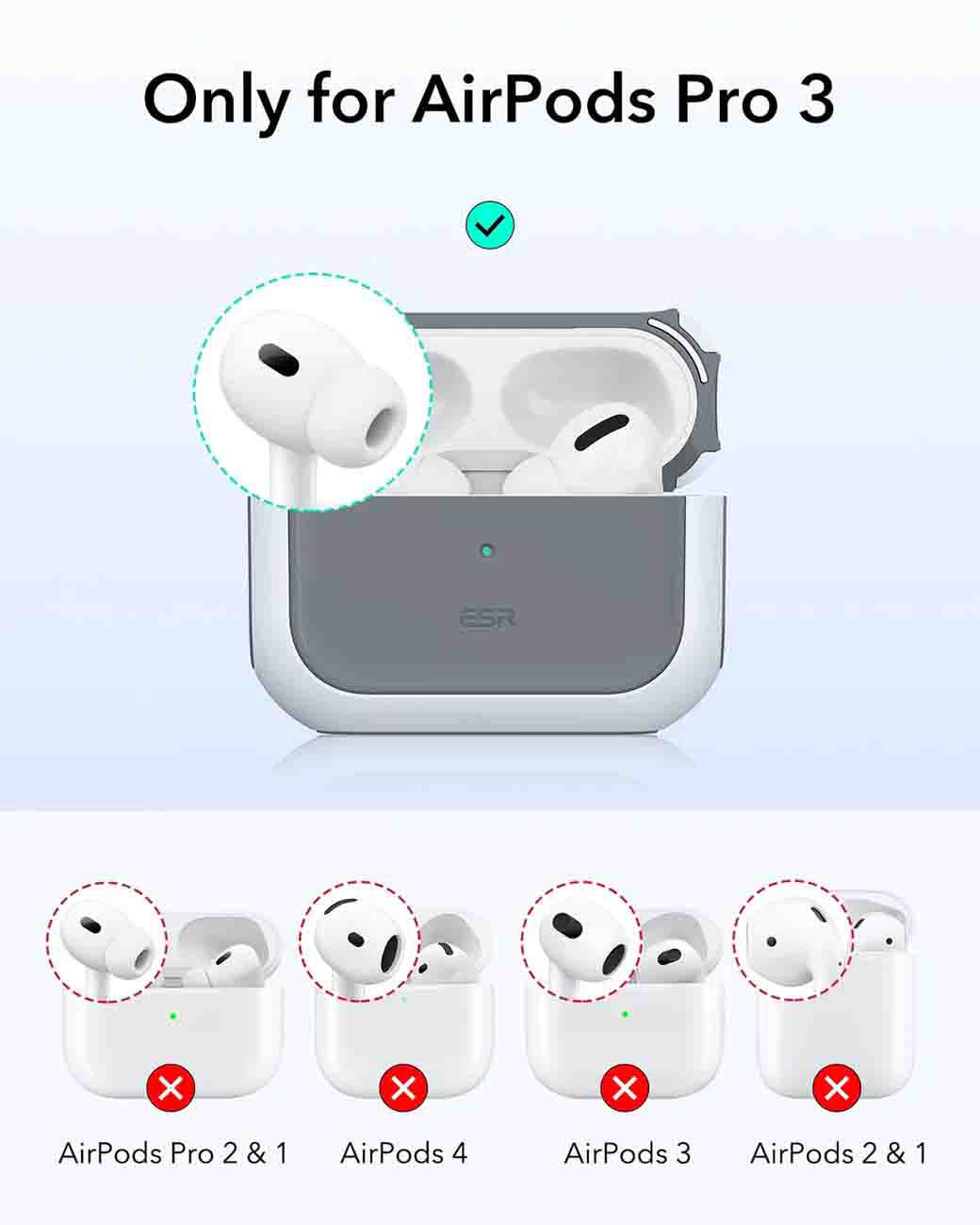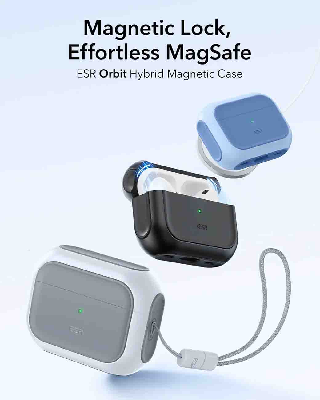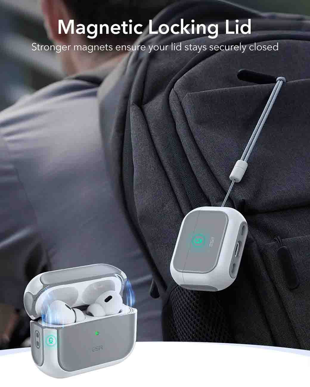 كفر ESR المغناطيسي لسماعة ابل AirPods برو 3 / يحمي من الطيحات / يدعم MagSafe / ابيض