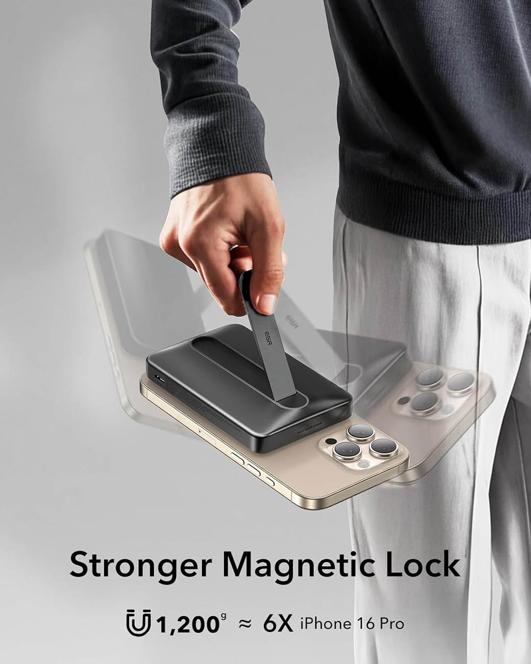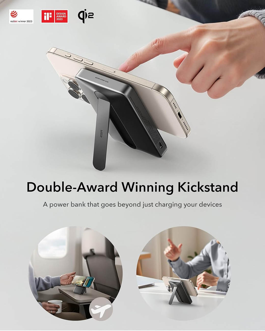 بطارية ESR Qi2 المغناطيسية / سعة 10 الاف mAh / مع ستاند مدمج / مدخل تايب سي قوة 27 واط / تيتانيوم