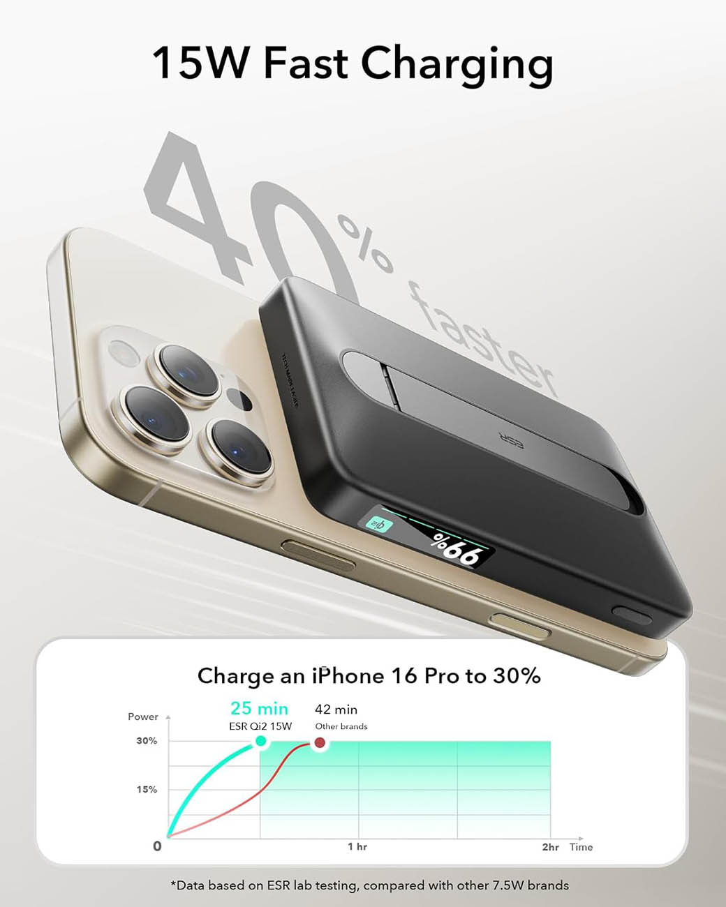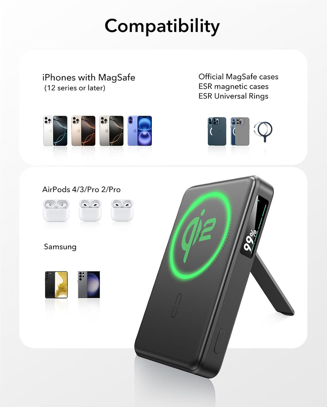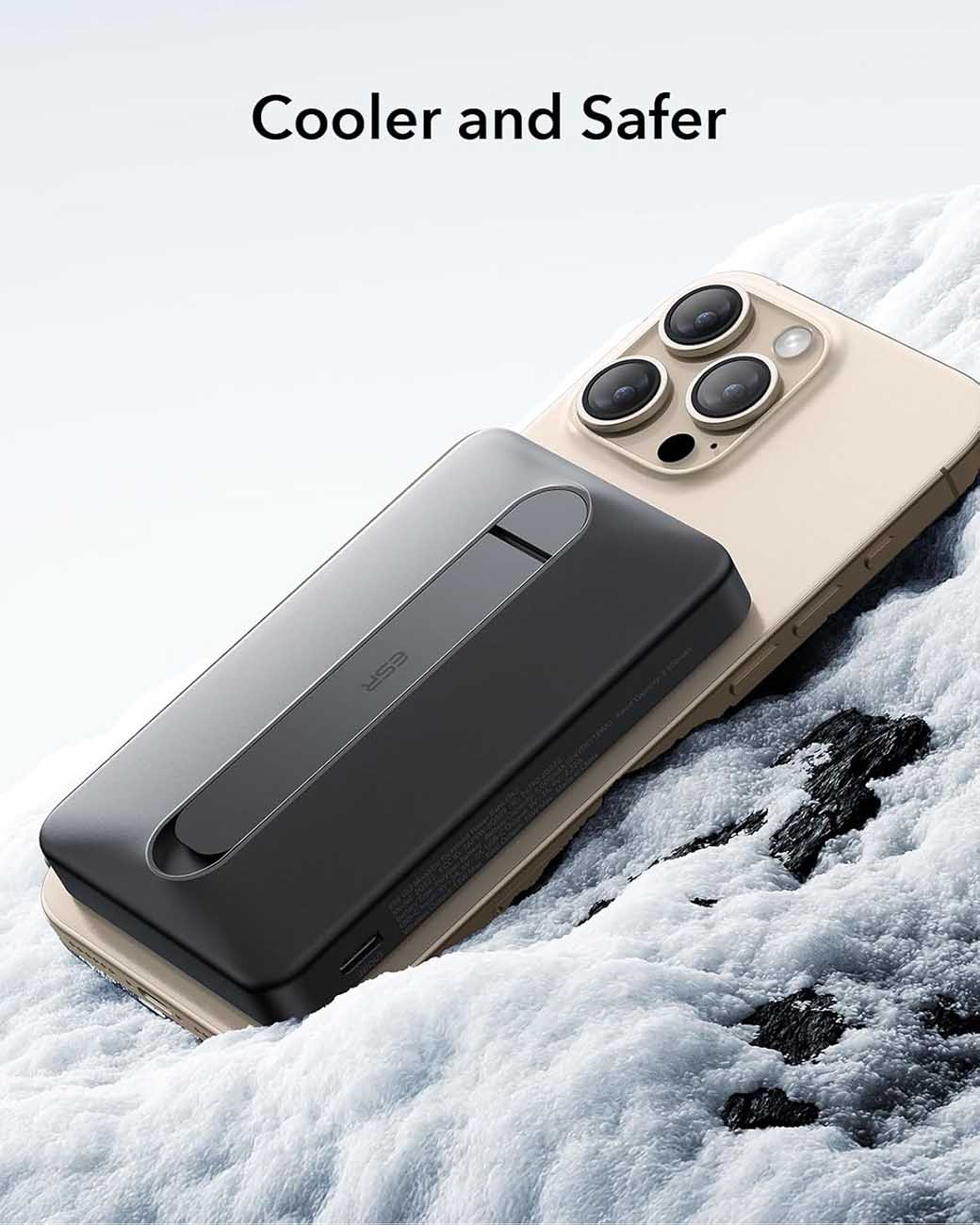 بطارية ESR Qi2 المغناطيسية / سعة 5000 mAh / مع ستاند مدمج / قوة 15 واط / اسود