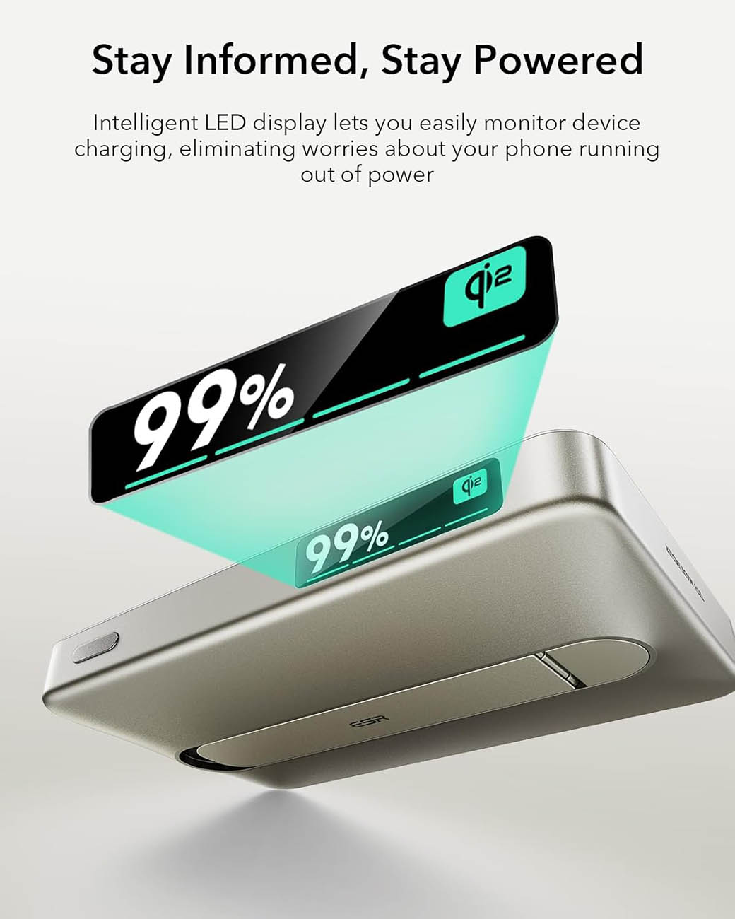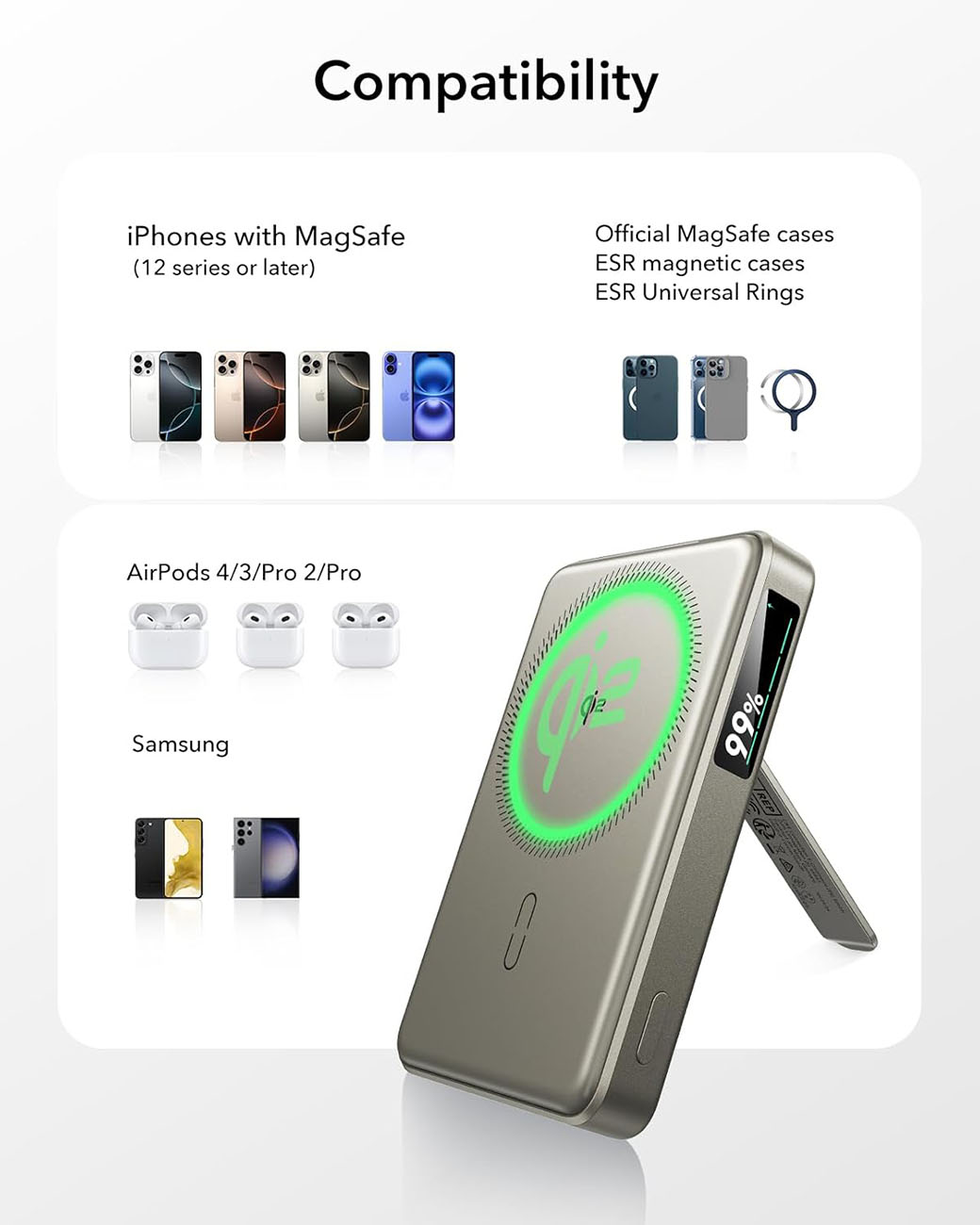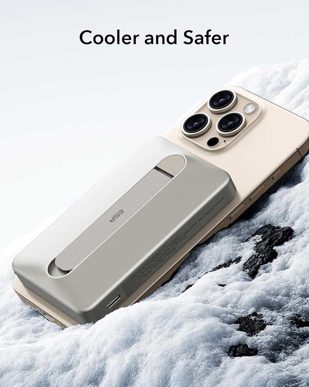 بطارية ESR Qi2 المغناطيسية / سعة 5000 mAh / مع ستاند مدمج / قوة 15 واط / اسود