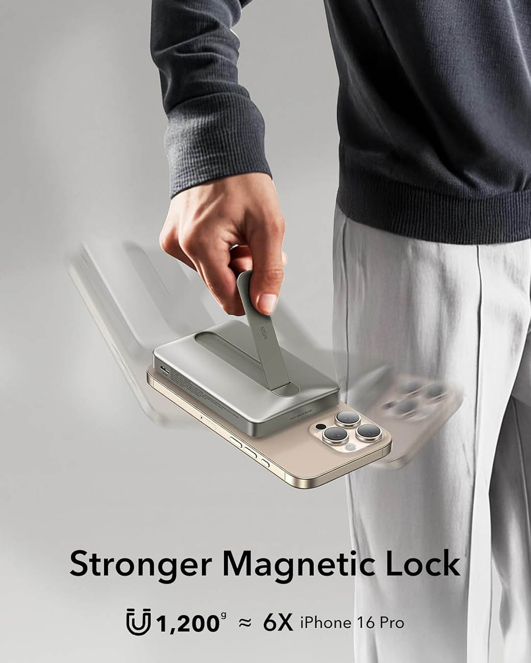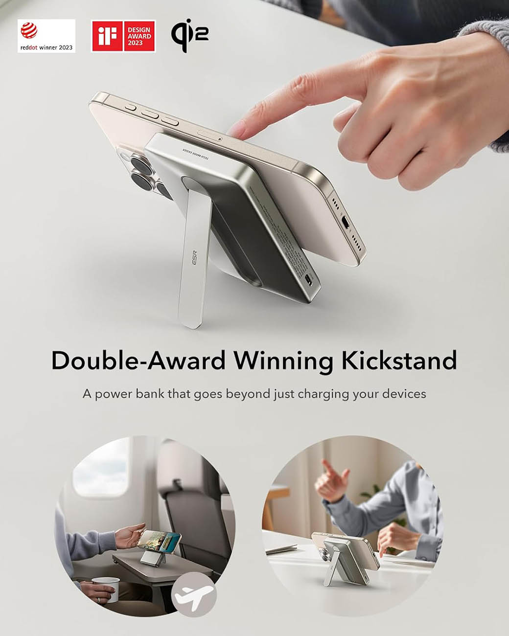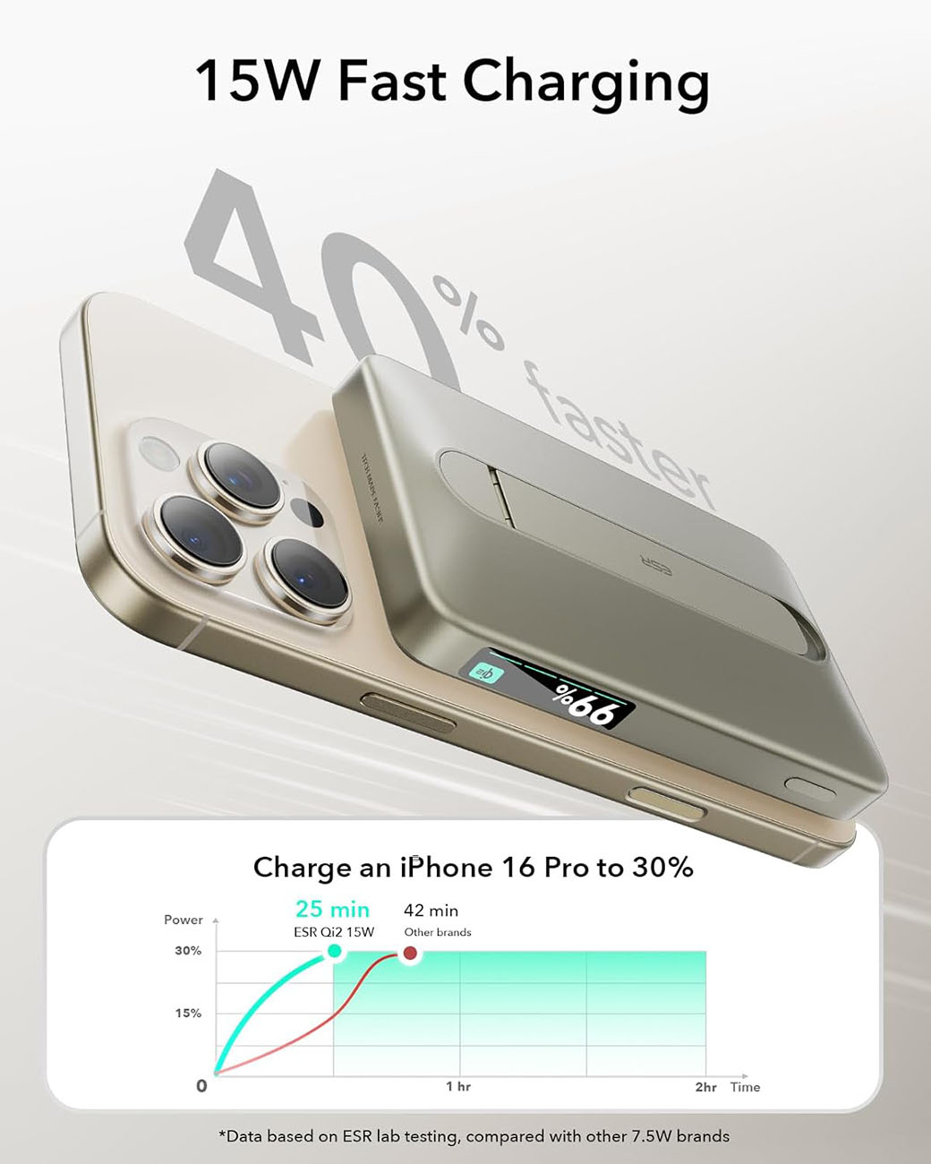 بطارية ESR Qi2 المغناطيسية / سعة 5000 mAh / مع ستاند مدمج / قوة 15 واط / اسود