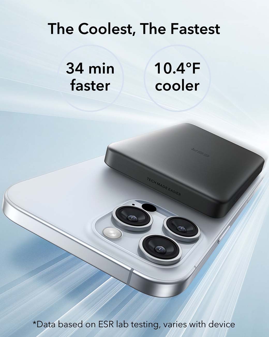 بطارية ESR Qi2 المغناطيسية / سعة 5000 mAh / مع ستاند مدمج / قوة 15 واط / اسود