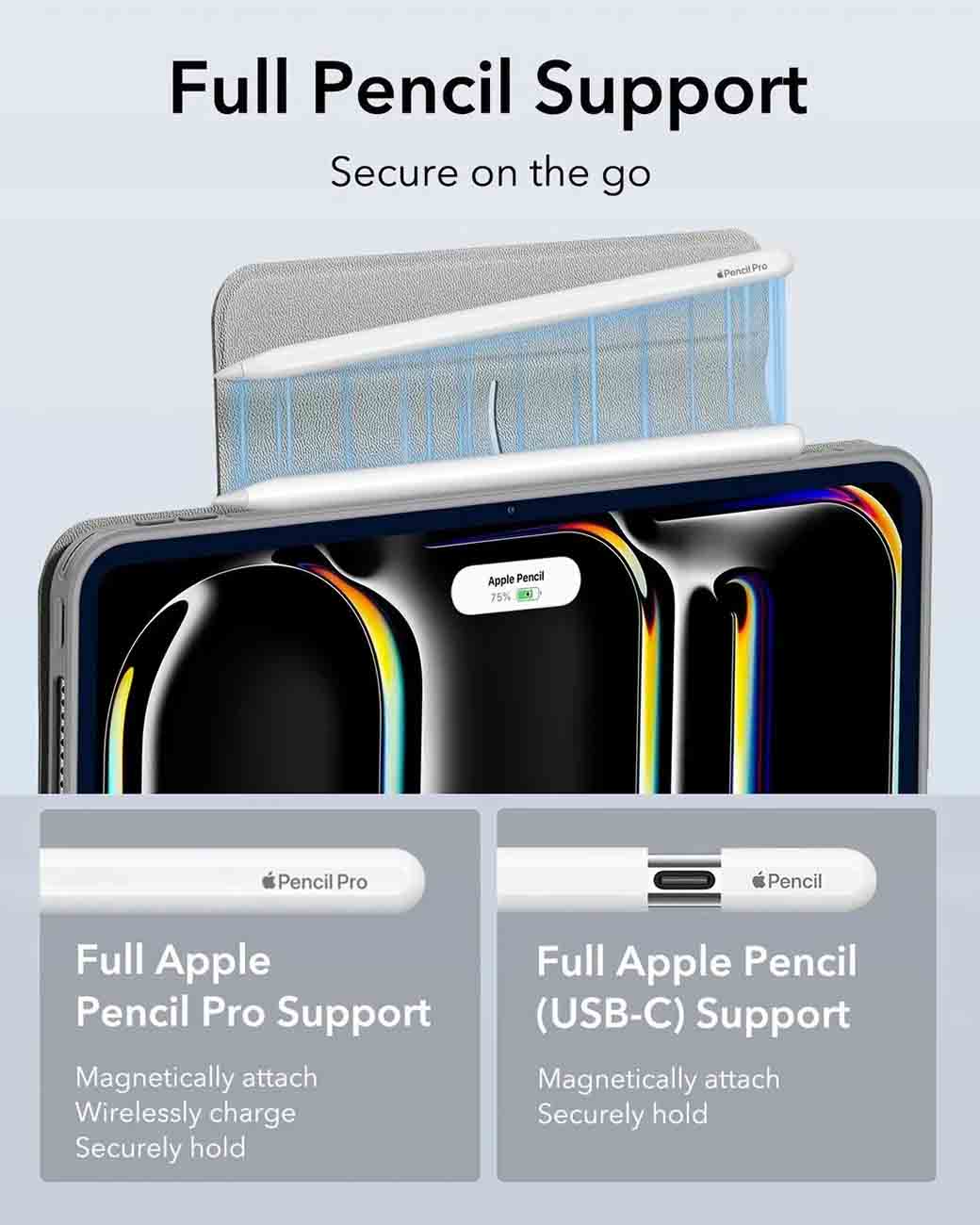 يدعم التثبيت المغناطيسي و الشحن اللاسلكي لقلم ابل Pro و قلم ابل USB-C.