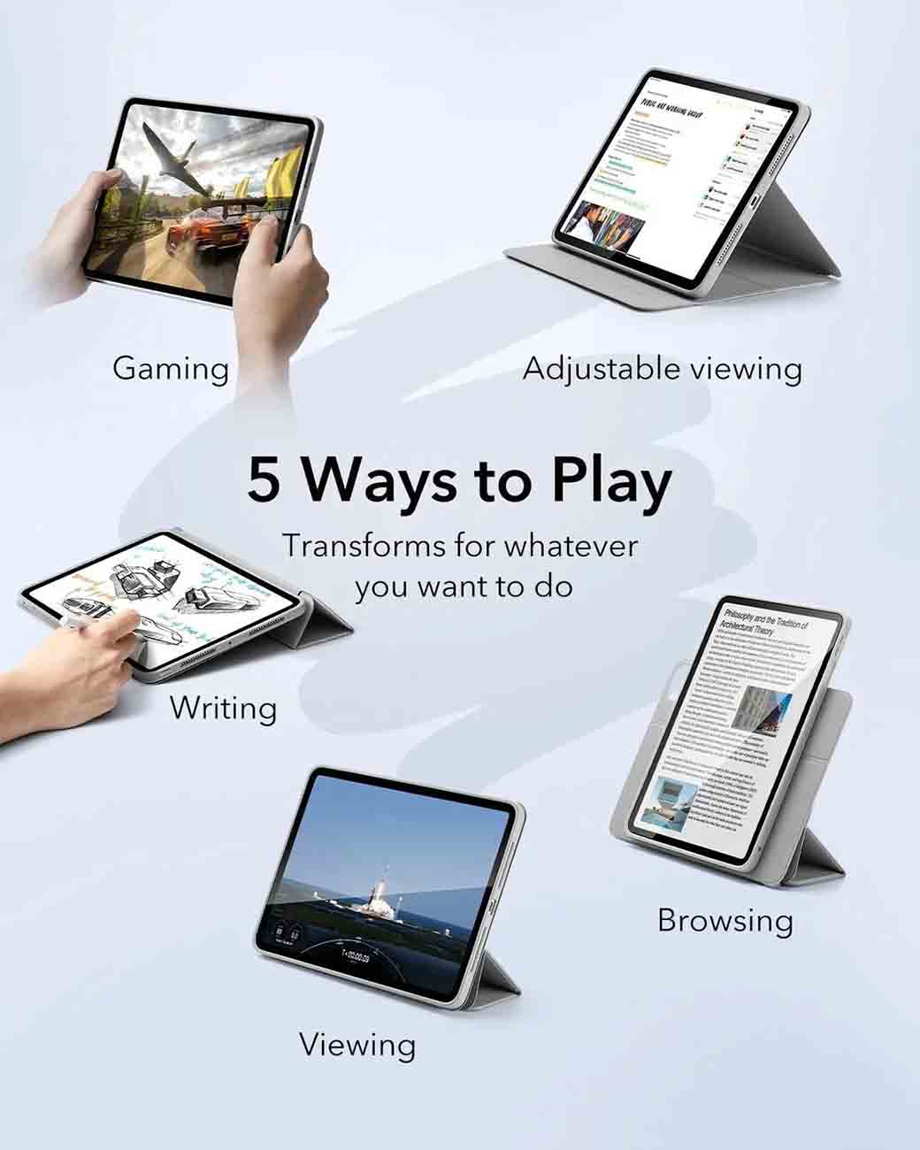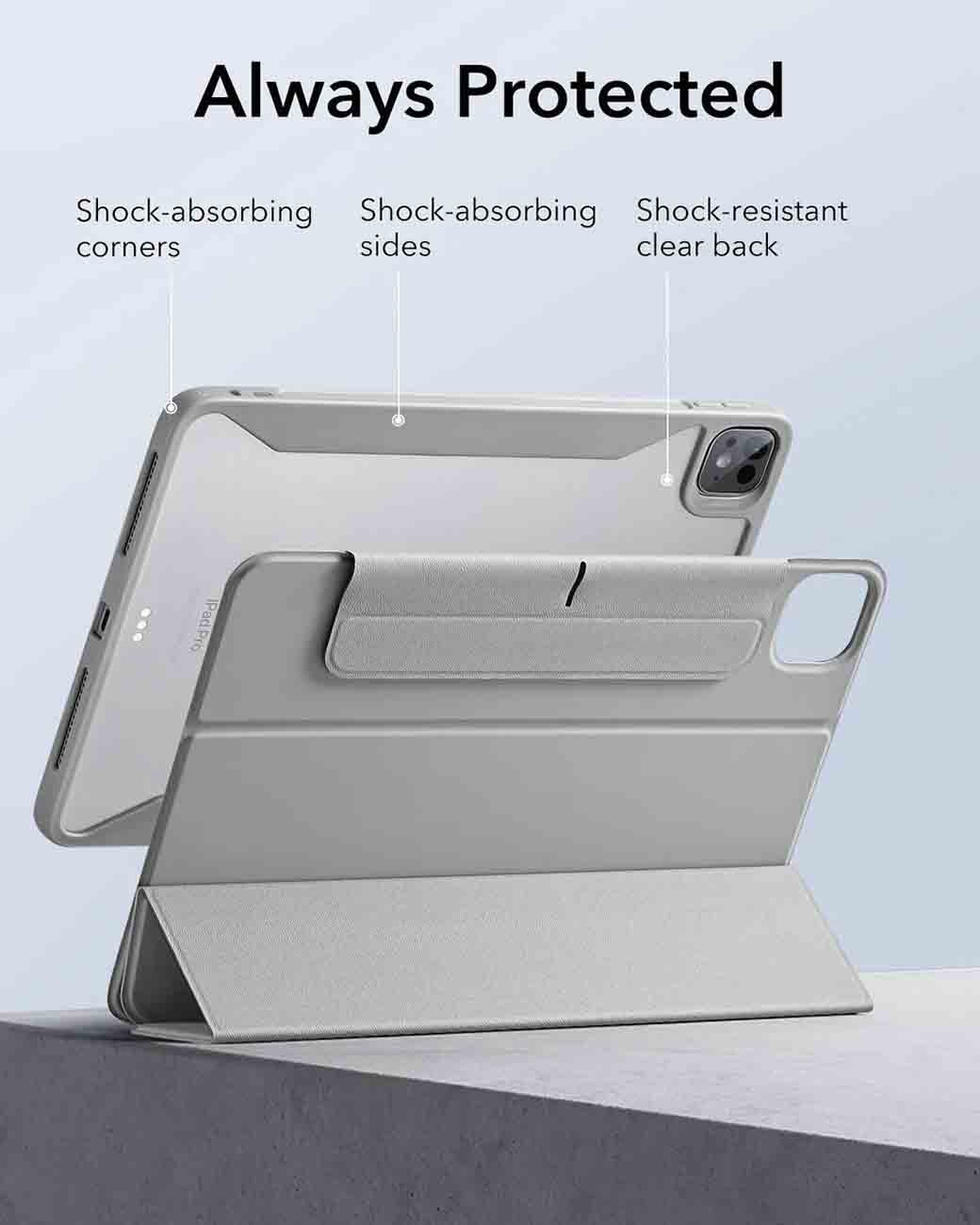 كفر ESR Rebound Hybrid لايباد برو 11 انش / ضد الطيحات / ستاند مدمج / مرن يتغير لعدة اشكال / رمادي