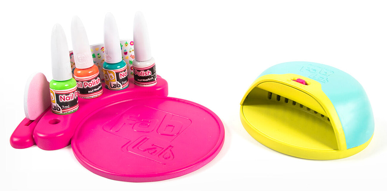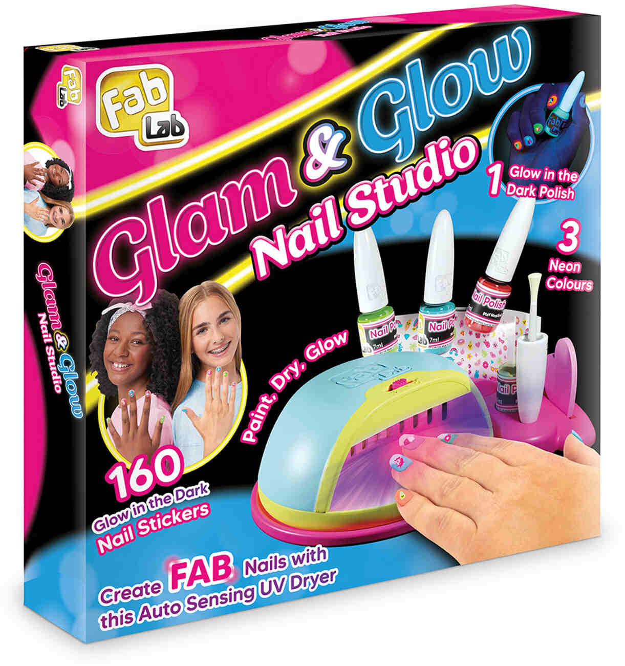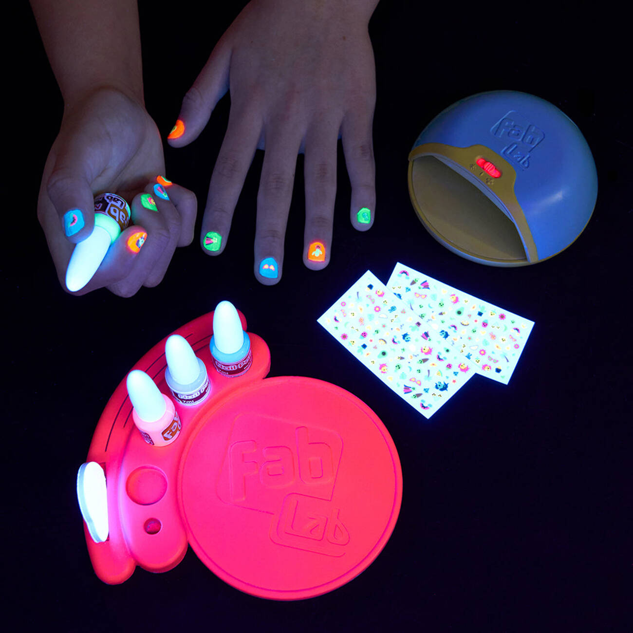 هذي الحزمة عالية الجودة من Fab Lab تعطيك مناكير تضيئ في الليل مع جهاز لتجفيف طلاء الاظافر.