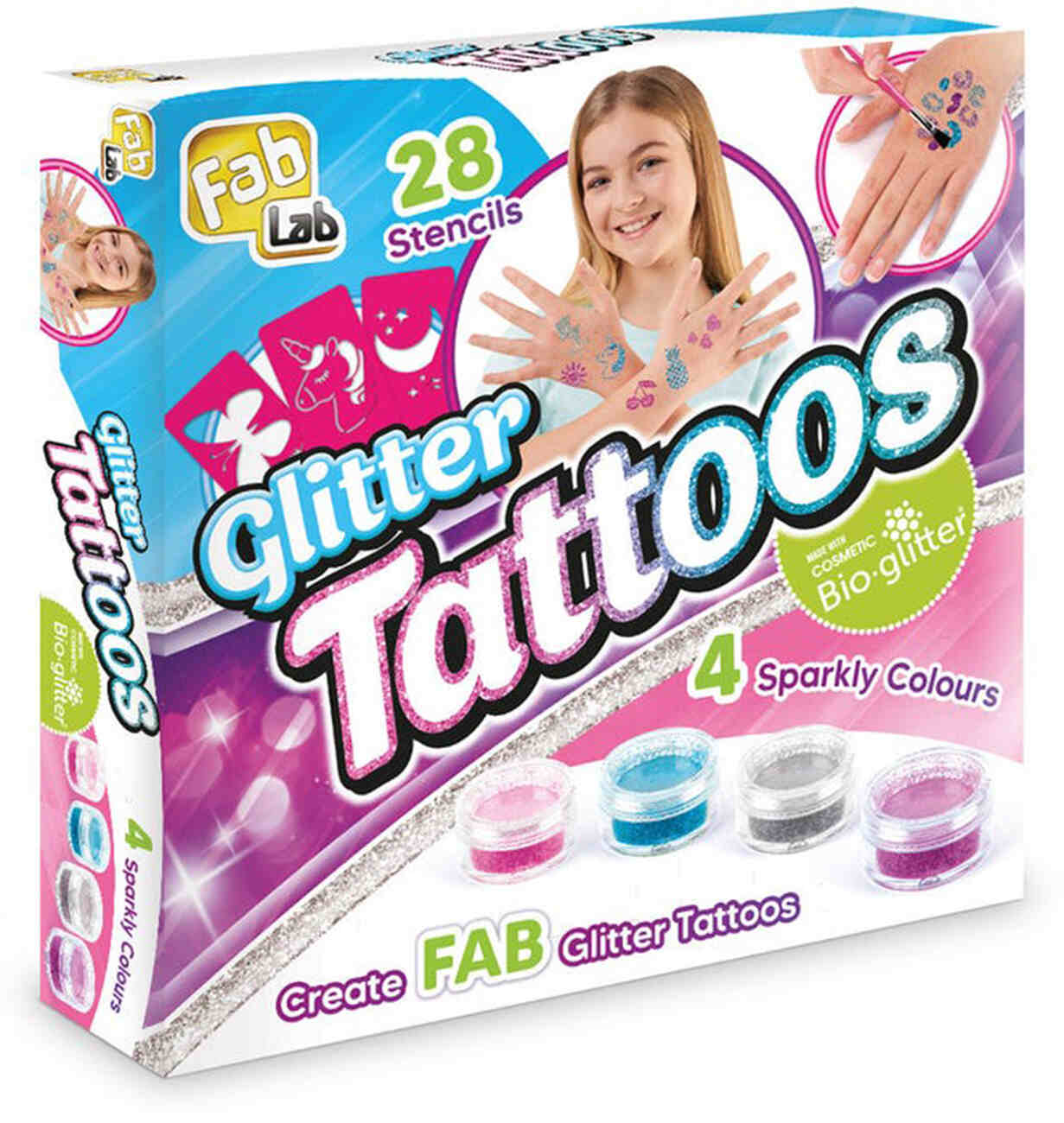 اللعبة تحتوي على 29 شكل مختلف يقدر يستخدمه طفلك للرسم بالـglitter.