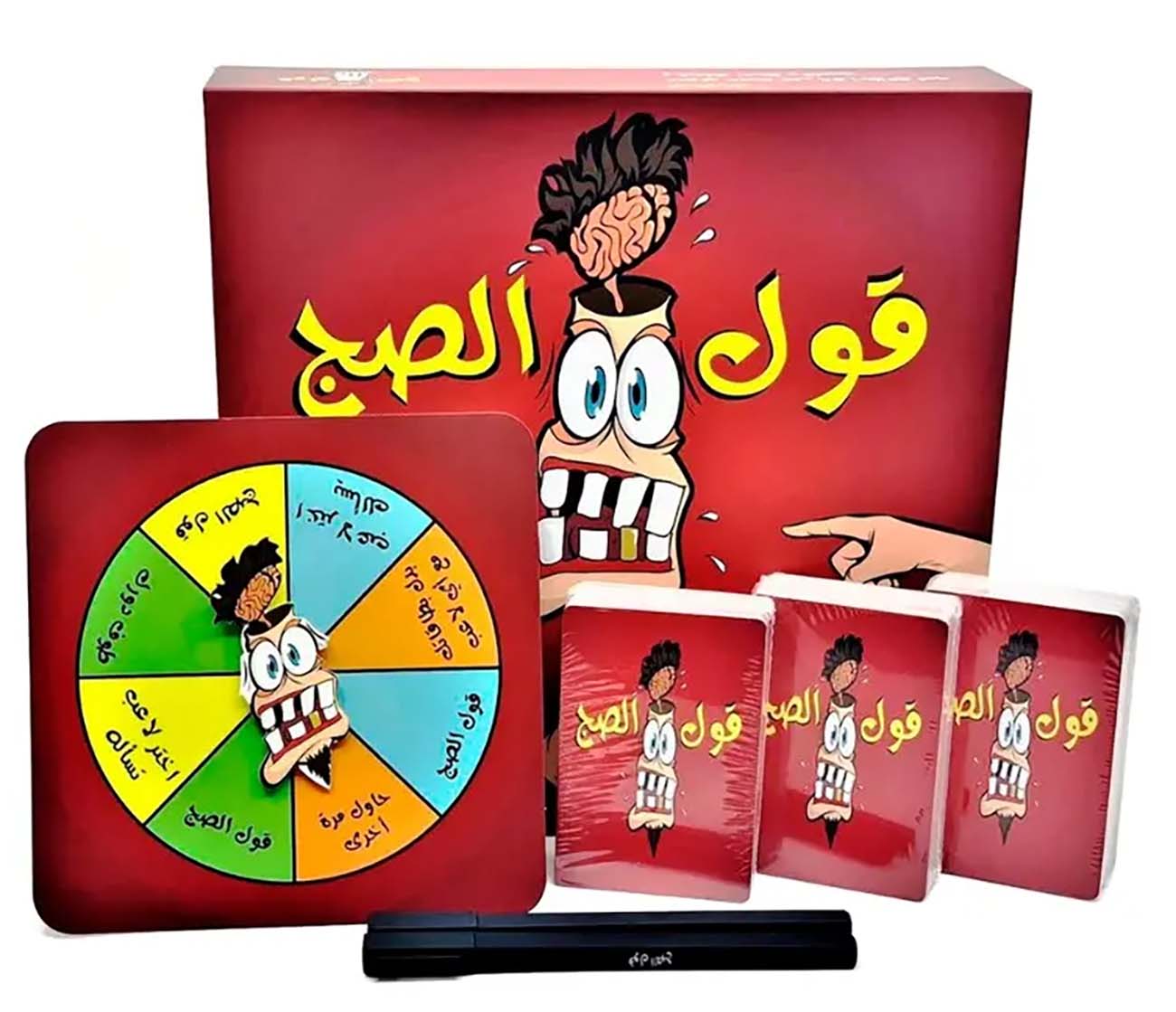 تتضمن اللعبة .. عجلة الحظ .. 159 بطاقة .. اقلام حبر.