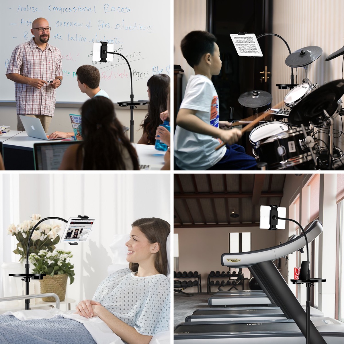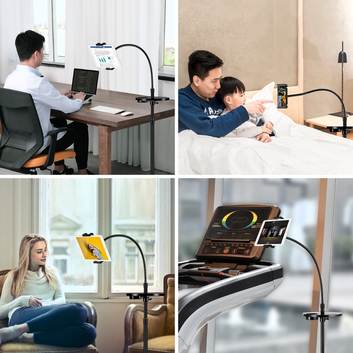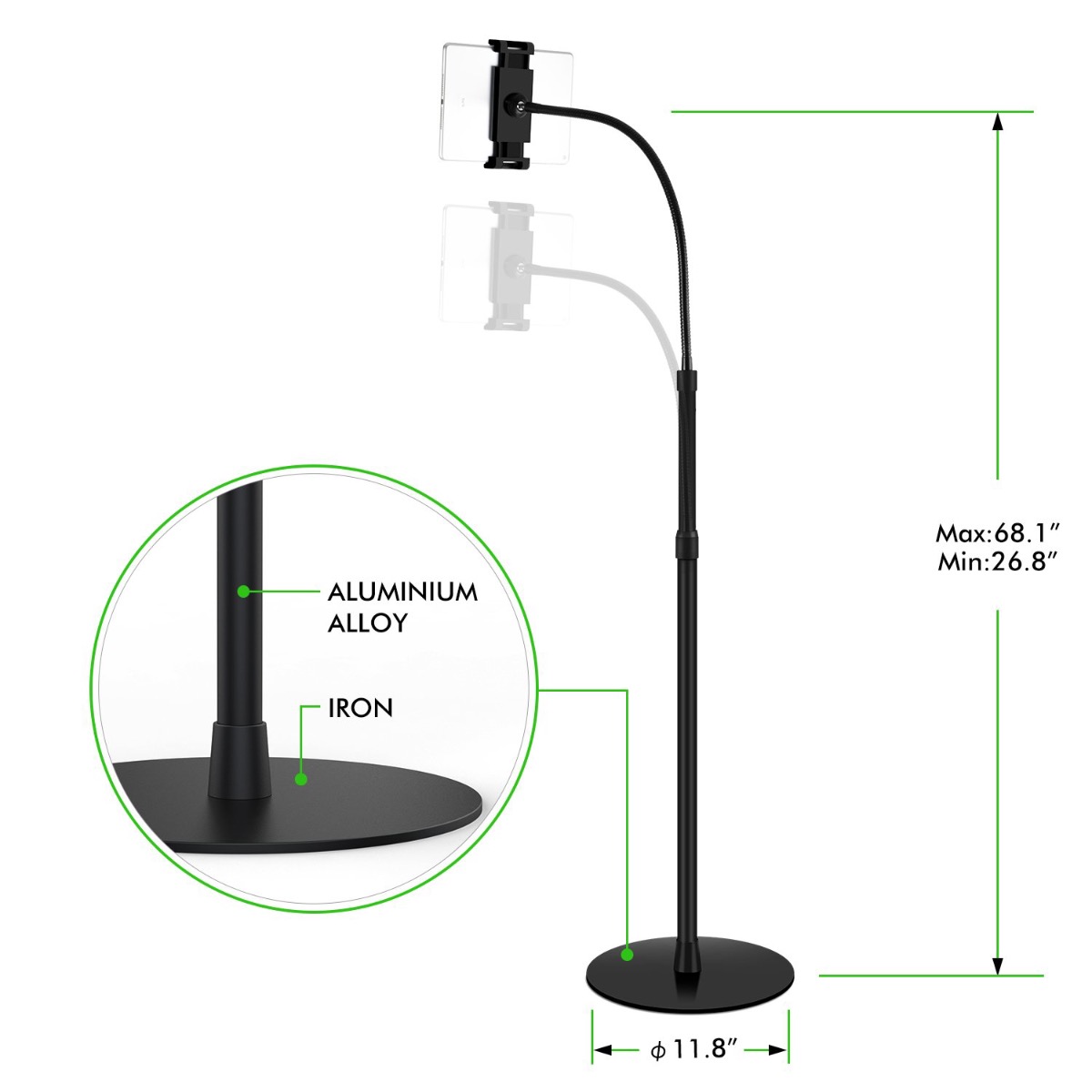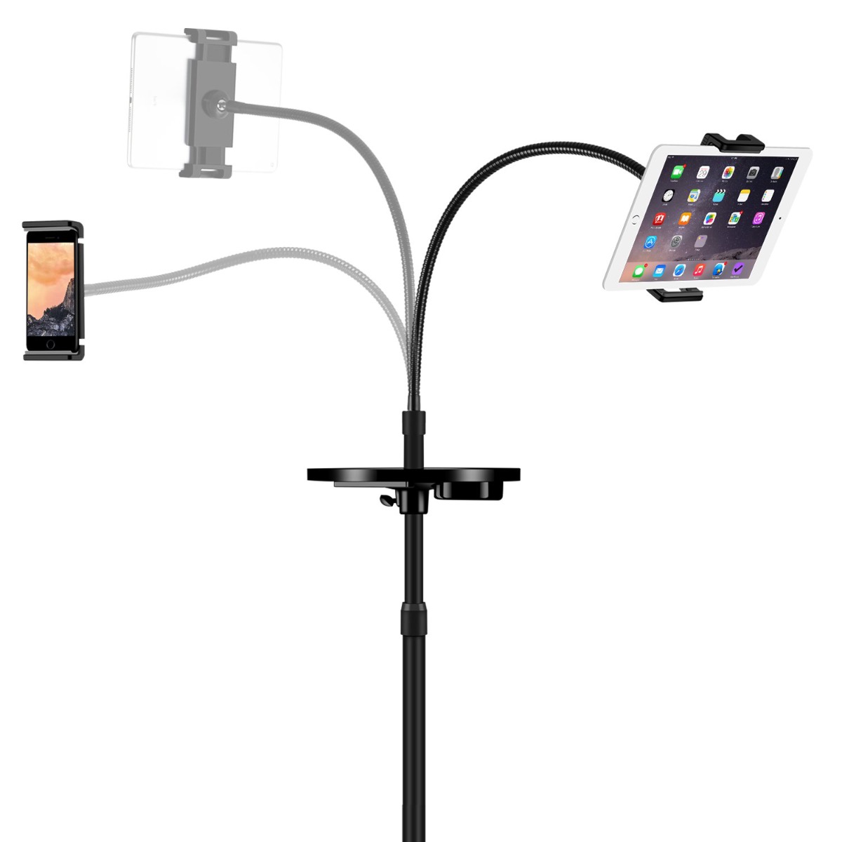 .ستاند مصنوع من مواد قوية عالية الجودة مثل الالمنيوم .. الشي اللي يخليه يستمر معاك باداء ممتاز مهما طال استخدامك وبدون تراجع جودته - .ذراع الستاند فيها سليكون لين من الجهتين للامساك بجهازك بشكل محكم وايضاً بدون خدشه او الاضرار به - .فيه طاولة صغيرة لتثبيت مشروبك .. بطارية باور بانك او اي شي تبيه - .الستاند مرن من الاعلى .. الشي اللي يخليه سهل الحركة وتغيير زاوية العرض للزاوية اللي تبيها -