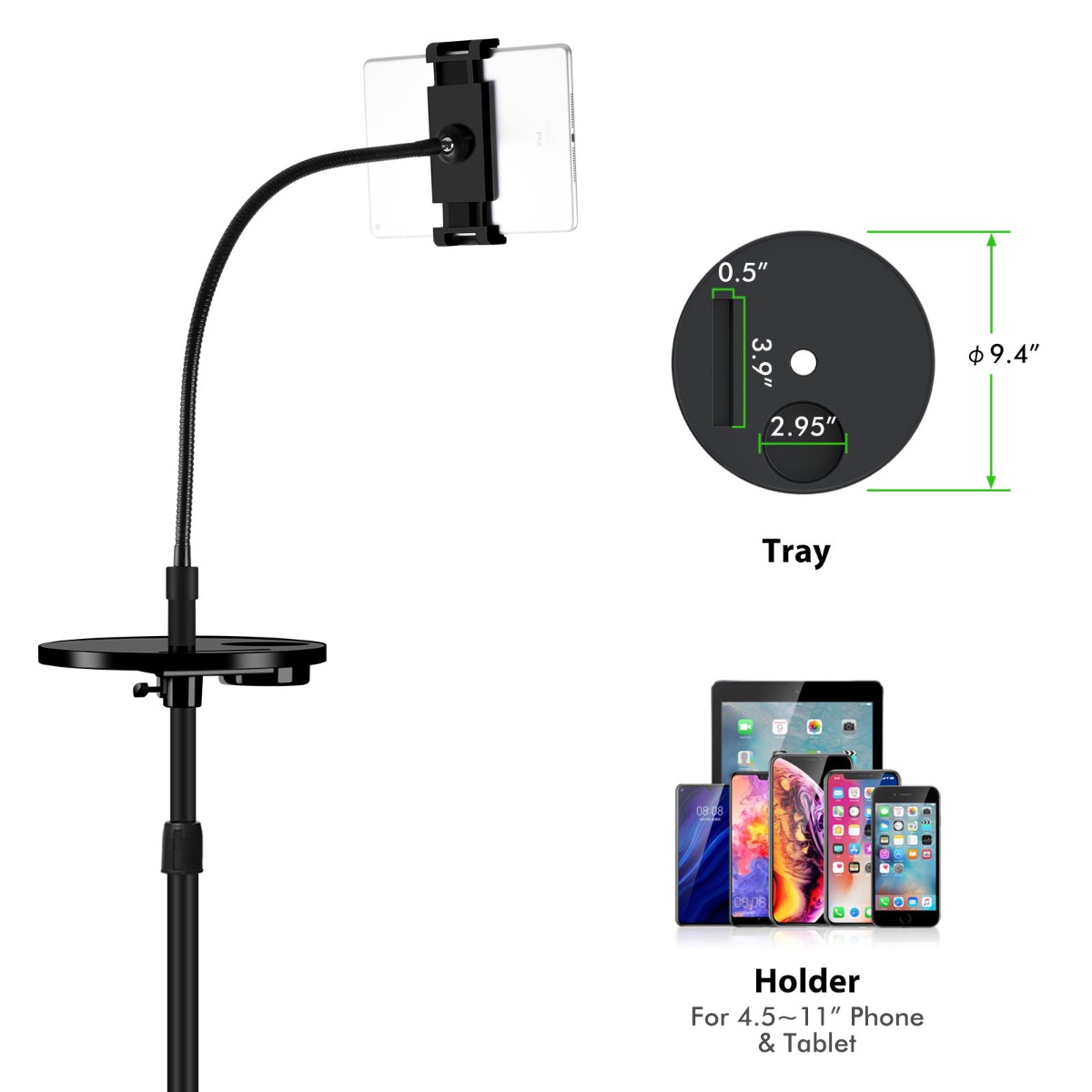 :ميزات المنتج يدعم كل من - الجوالات من حجم 4.5 انش او أكبر - التابلت لين حجم 11 انش -