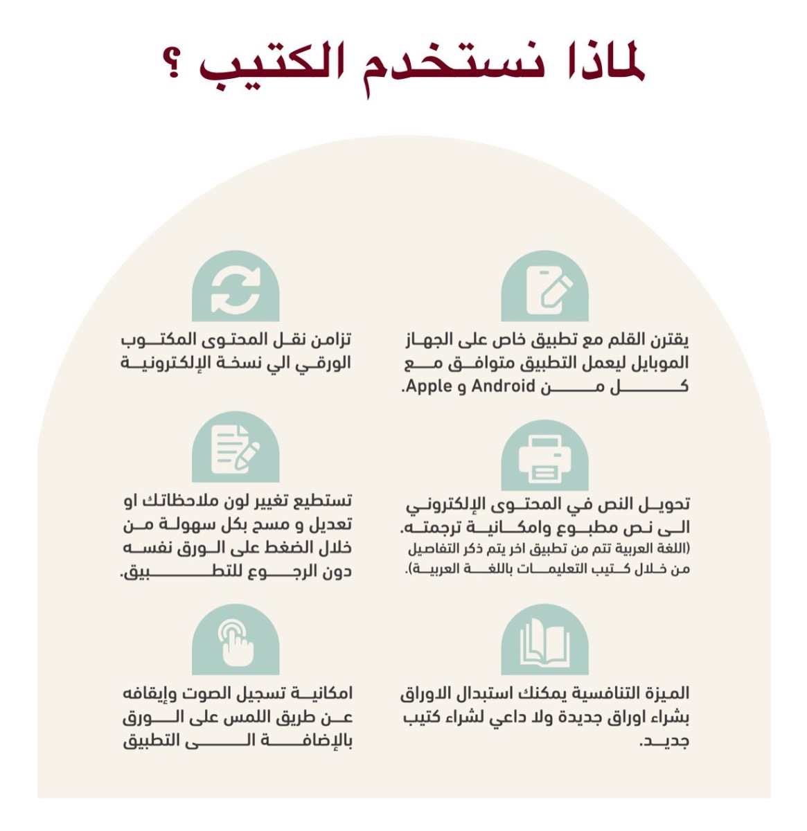 امكانية تسجيل الصوت وإيقافه عن طريق اللمس على الورق بالإضافة الي التطبيق