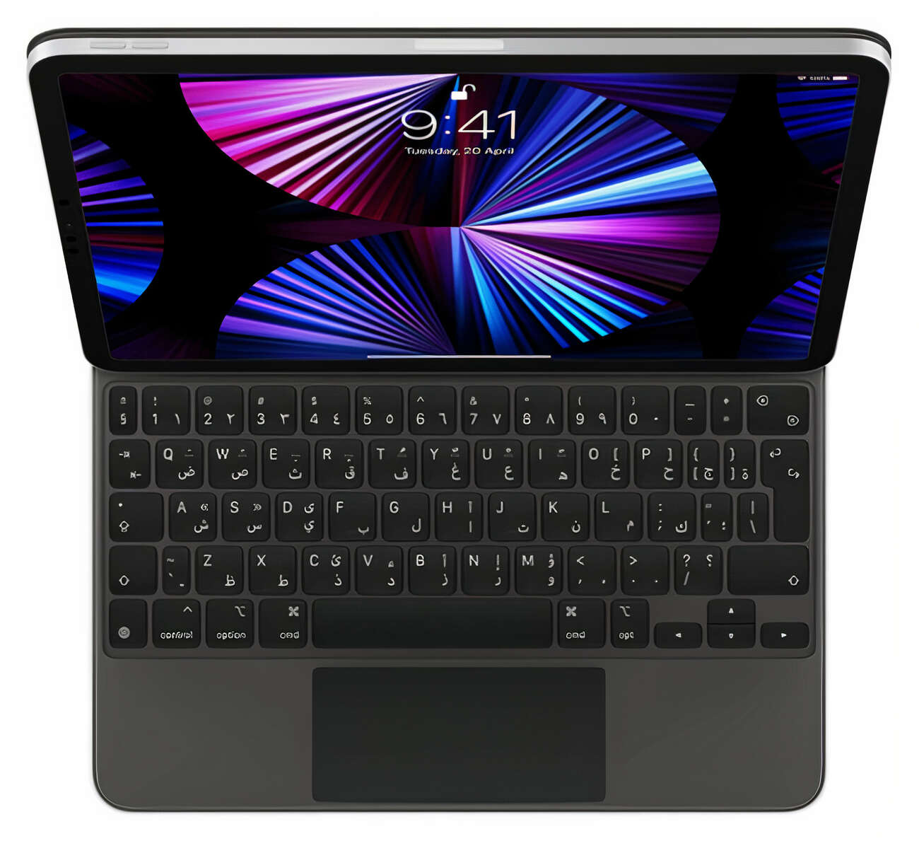 فيه بطارية 500 mAh لتشغيل الكيبورد .. الاضاءة والتراك باد بدون استهلاك بطارية ايبادك.
