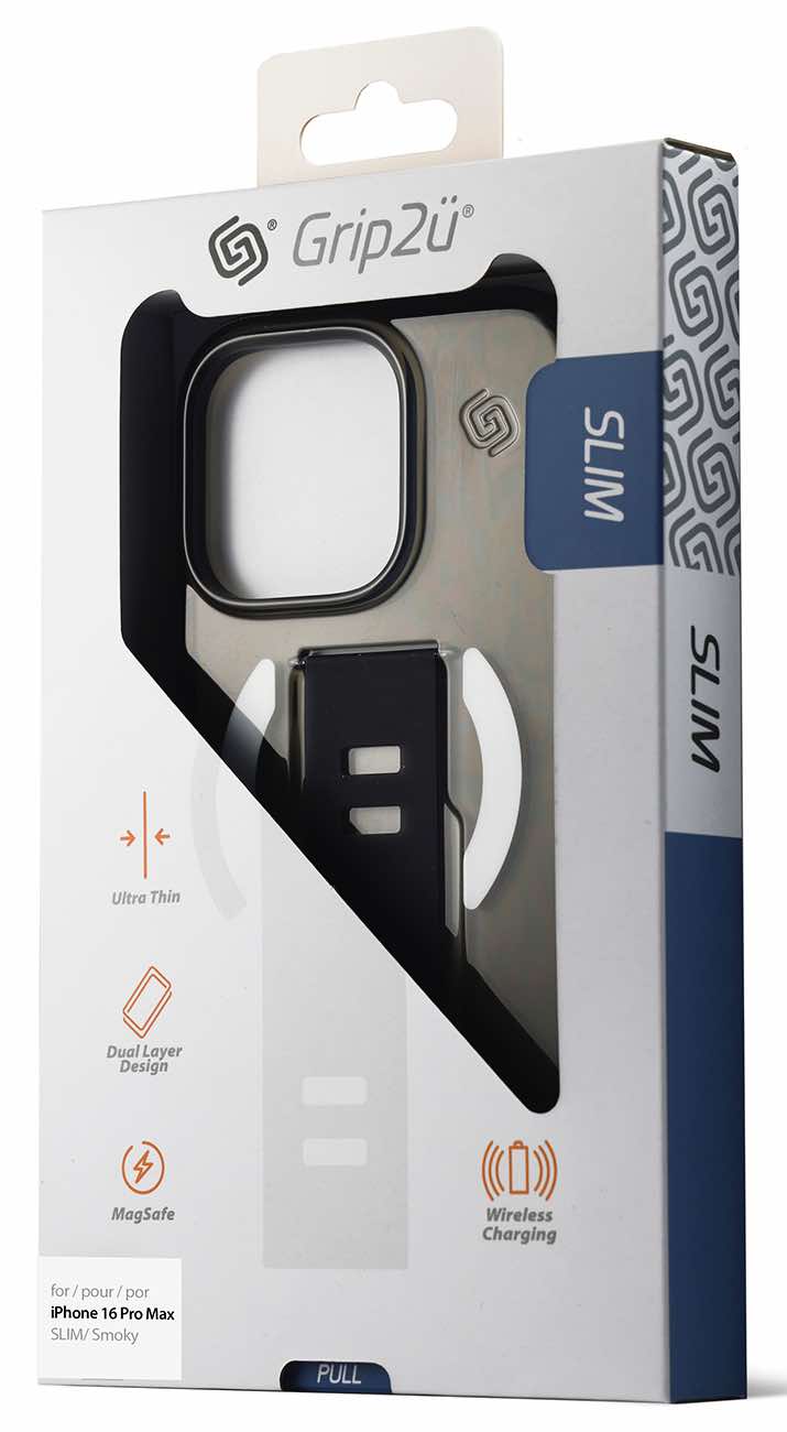 كفر Grip2u لايفون 16 برو ماكس / مع مسكة مدمجة / يدعم MagSafe / اصدار نحيف / لون Smoky