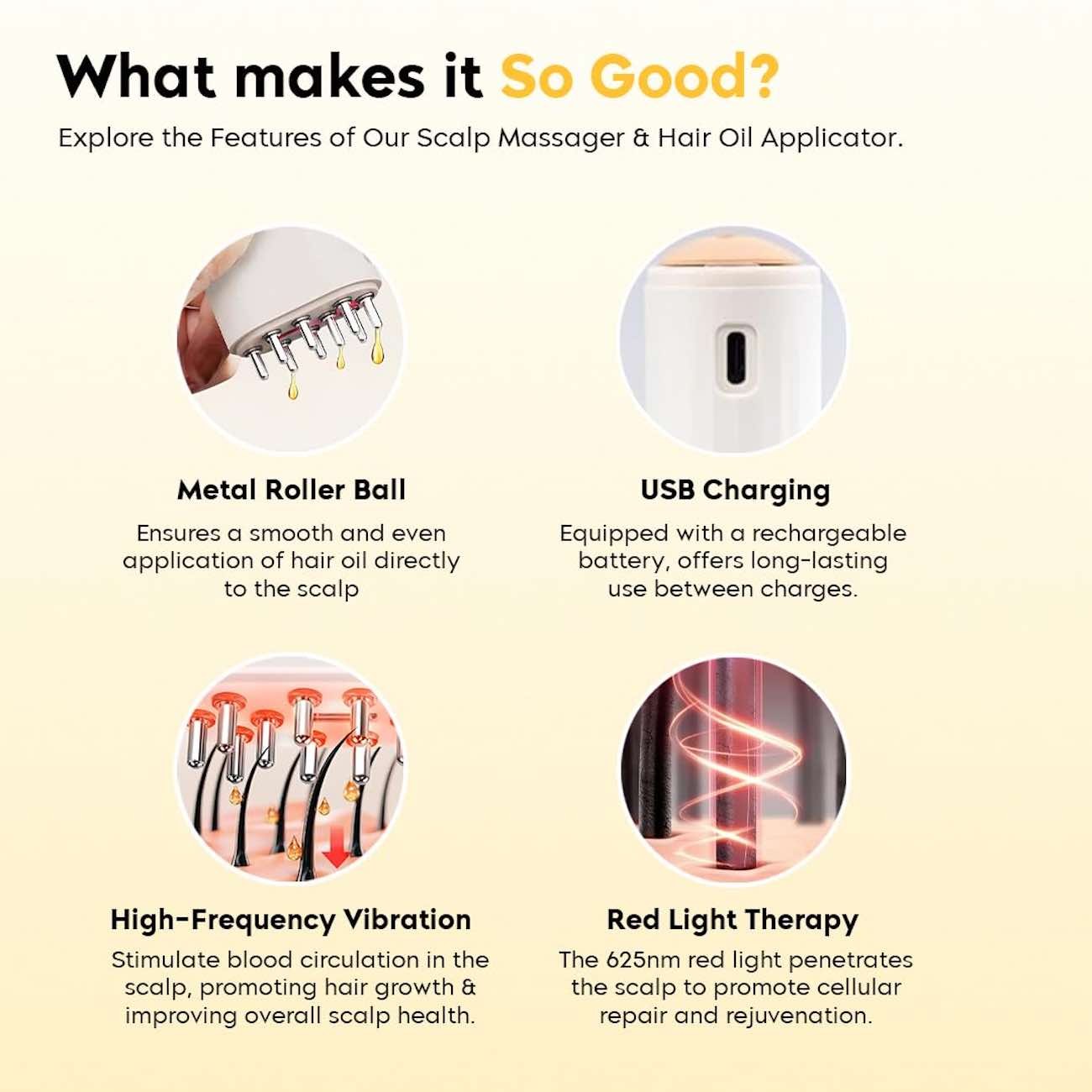 جهاز مساج فروة الرأس و موزع زيت للشعر / يعمل بالبطارية / علاج بالضوء الاحمر