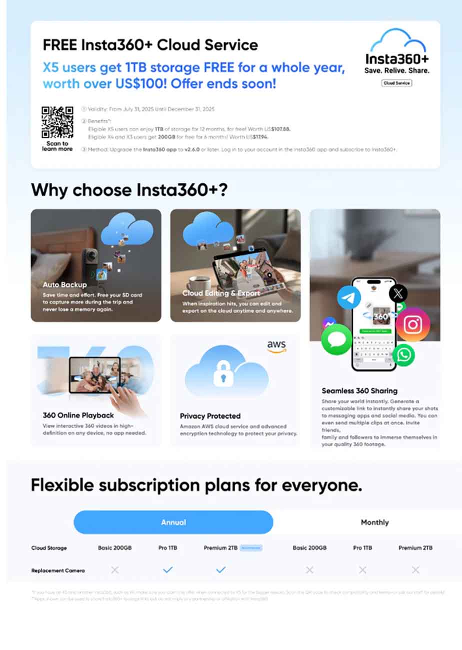 كاميرا الاكشن Insta360 X5 / دقة 8K / تصوير 360 درجة / تصوير احترافي مع ميزات محسنة