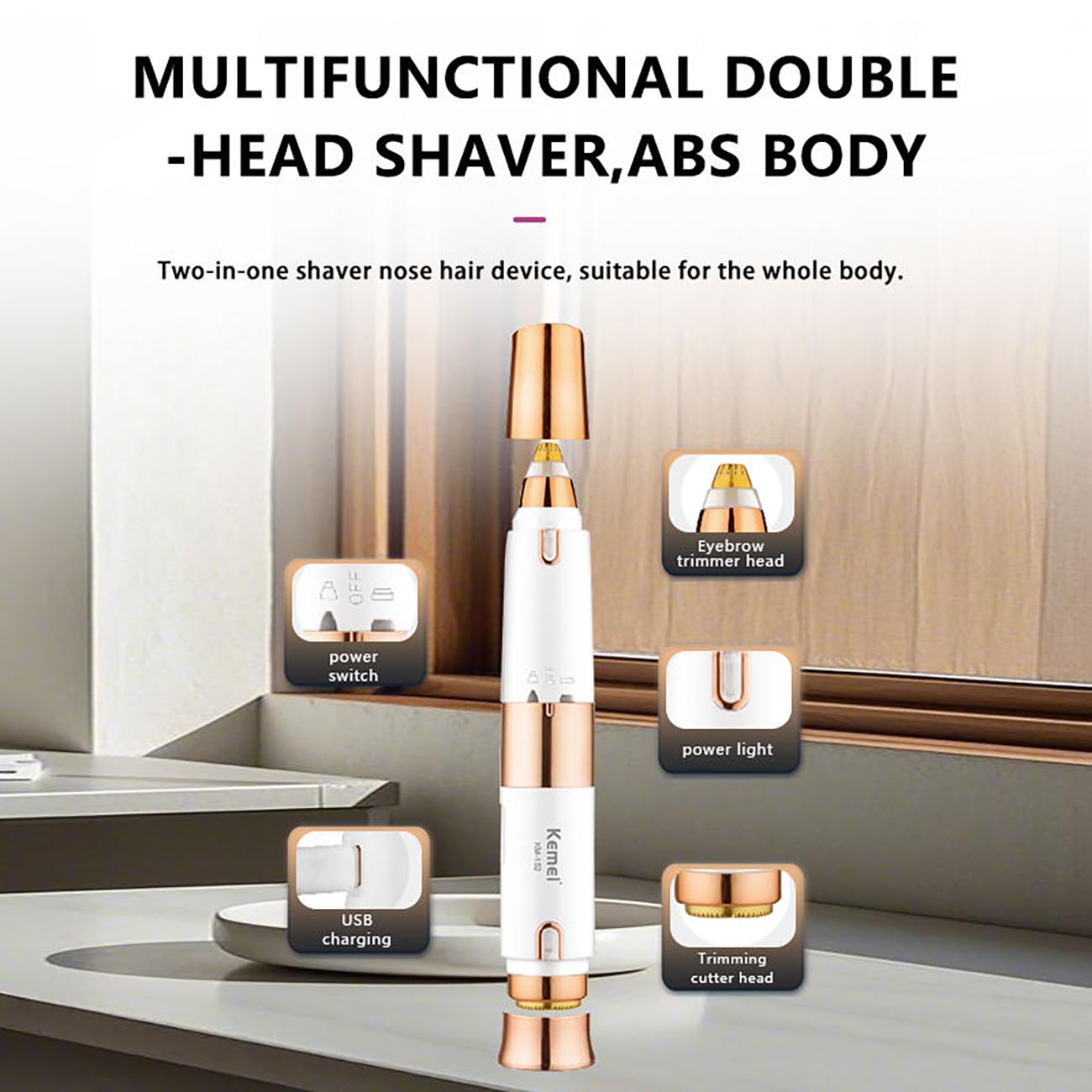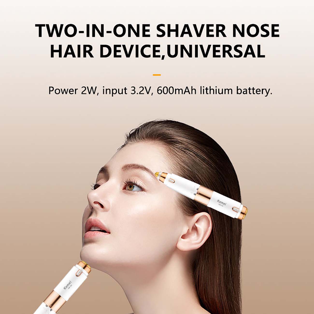 تصميم 2 في 1 .. يعمل على إزالة الشعر غير المرغوب فيه وكـ اداة لتحديد الحواجب بدقة.