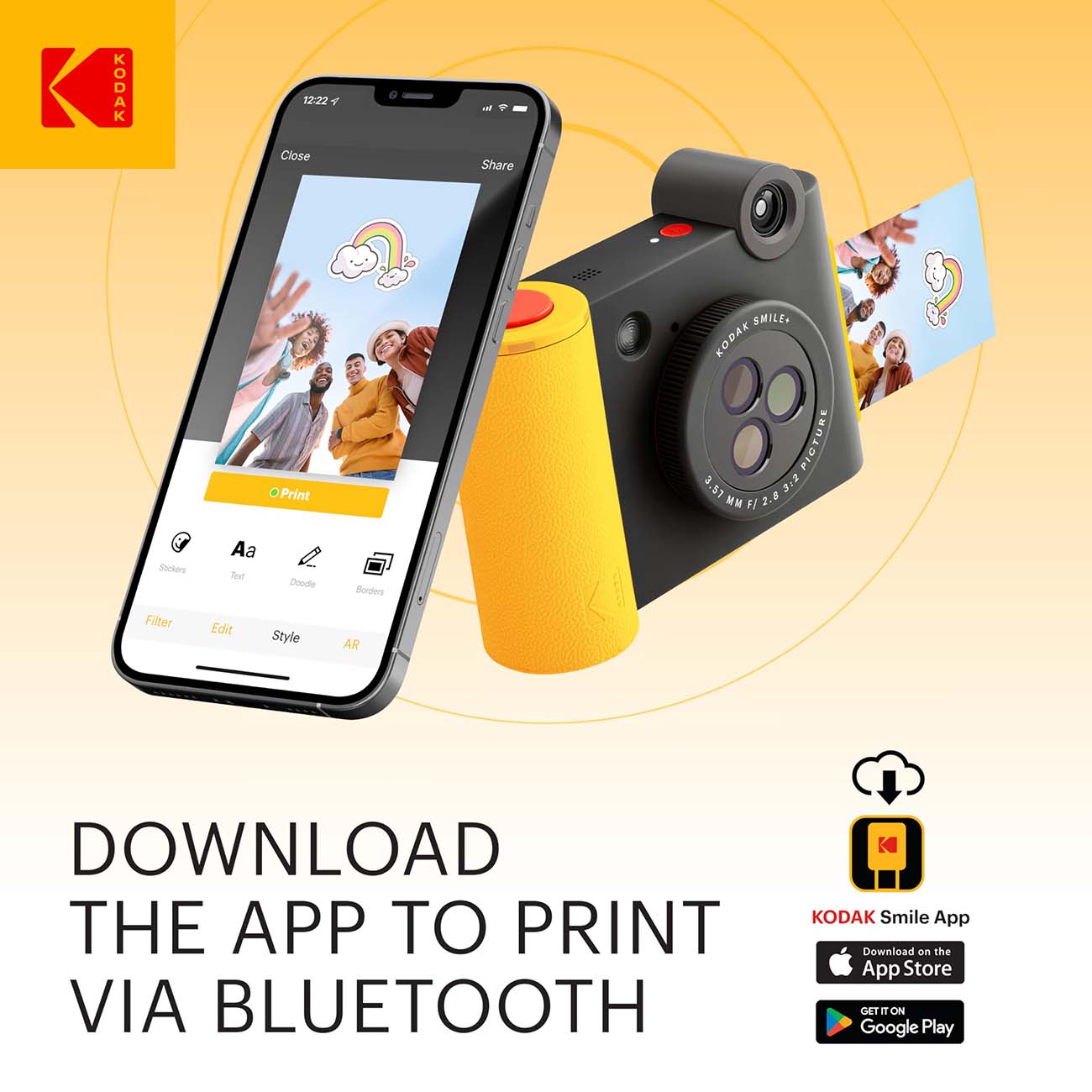 كاميرا Smile بلس الفورية من Kodak / كاميرا + طابعة / تحكم من الجوال / ورق 2x3 انش / اسود