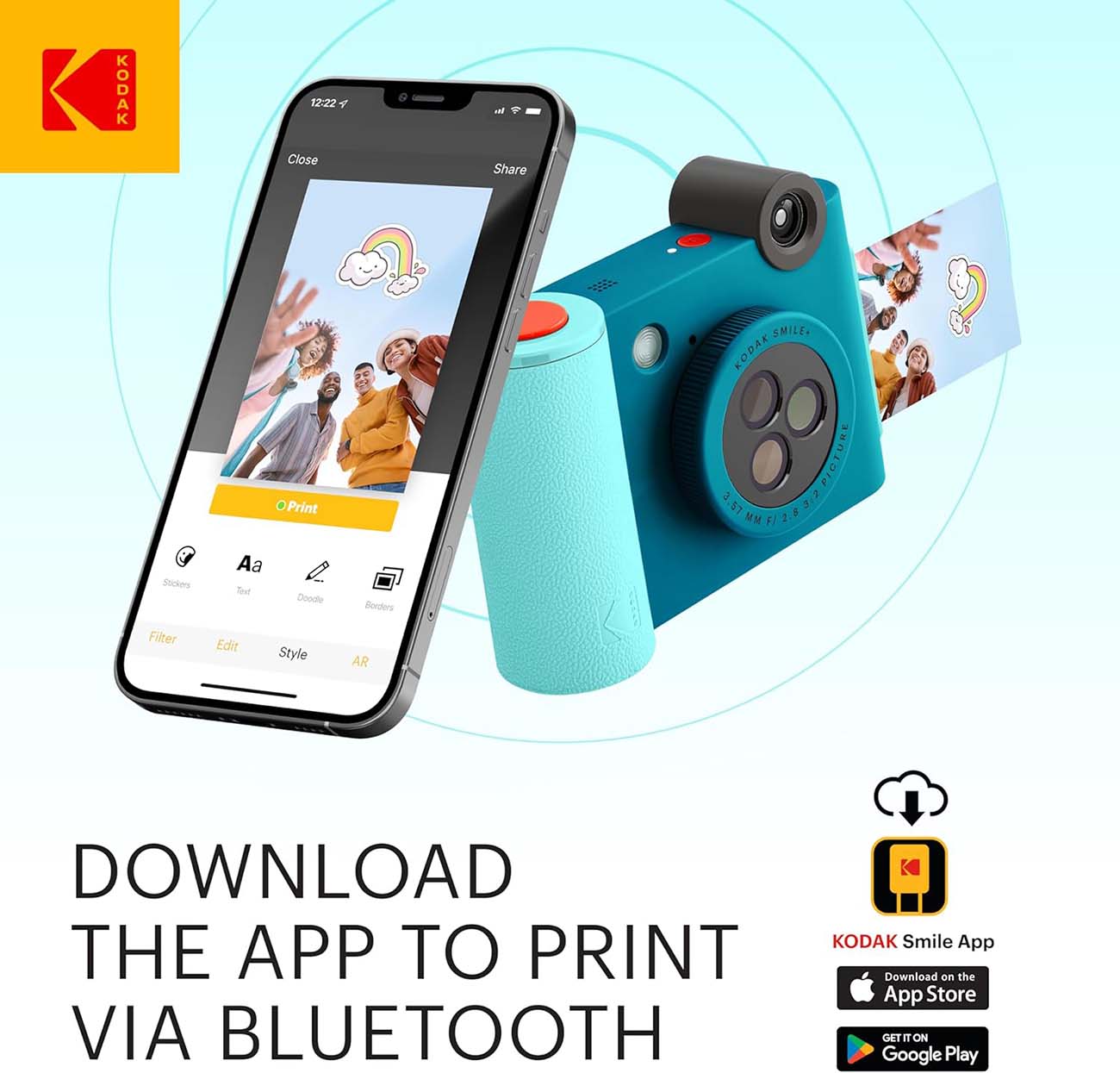 كاميرا Smile بلس الفورية من Kodak / كاميرا + طابعة / تحكم من الجوال / ورق 2x3 انش / ازرق