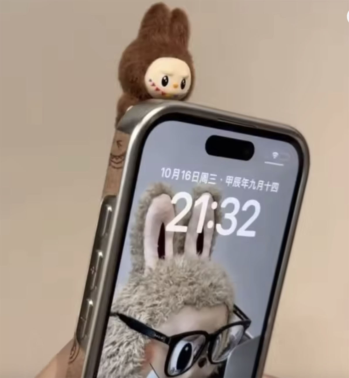 كفر لابوبو لايفون 15 برو / مع حزام معصم / تصميم 3D / ضد الطيحات و الخدوش / بني