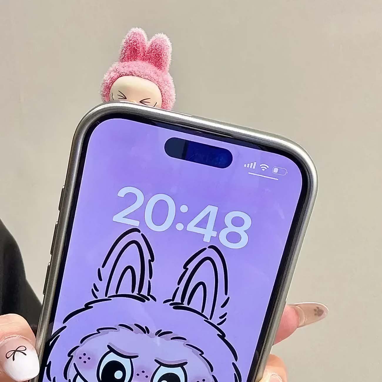 كفر لابوبو لايفون 15 برو / مع حزام معصم / تصميم 3D / ضد الطيحات و الخدوش / وردي