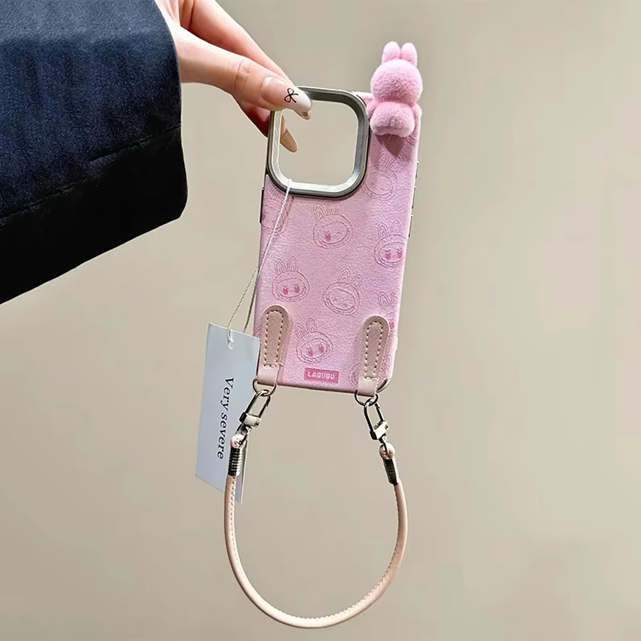 كفر لابوبو لايفون 16 برو ماكس / مع حزام معصم / تصميم 3D / ضد الطيحات و الخدوش / وردي