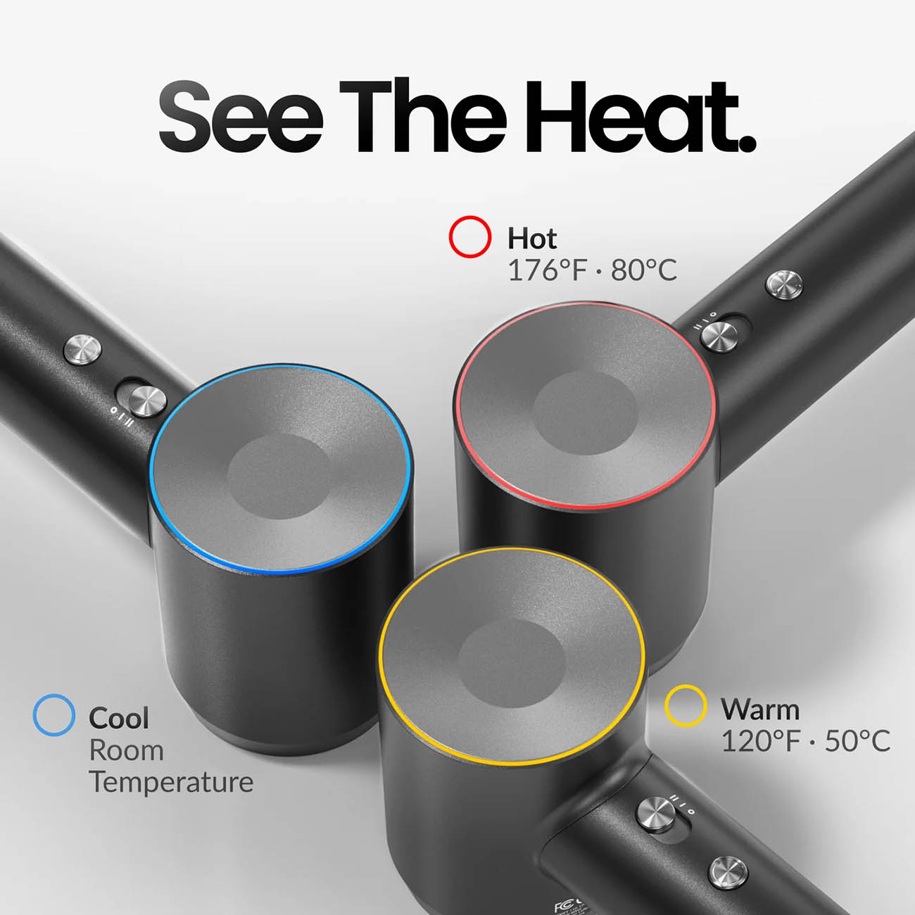 ييظهر لك 3 الوان LED مختلفة تتعلق باعدادات درجة الحرارة: الأحمر ل80 درجة مئوية .. الأصفر 50 .. والأزرق للهواء البارد.