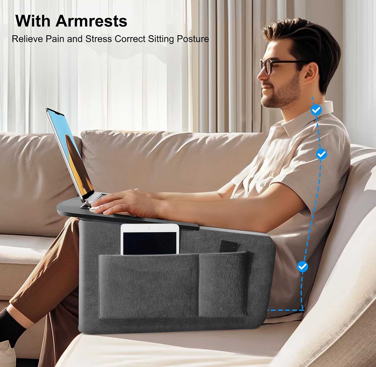 تقدر تستخدمها على السرير .. وانت جالس عالارض .. يعني حرفياً أي وضعية جلوس كنت فيها.
