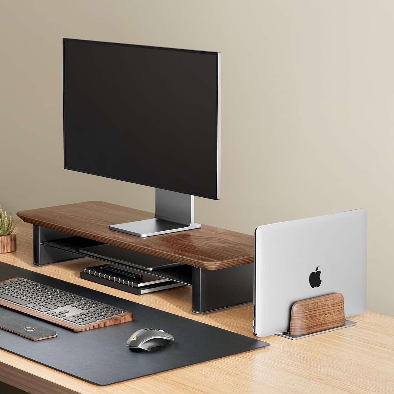 ستاند مكتبي لجهاز الماك بوك مصنوع من خشب فاخر وعالي الجودة.