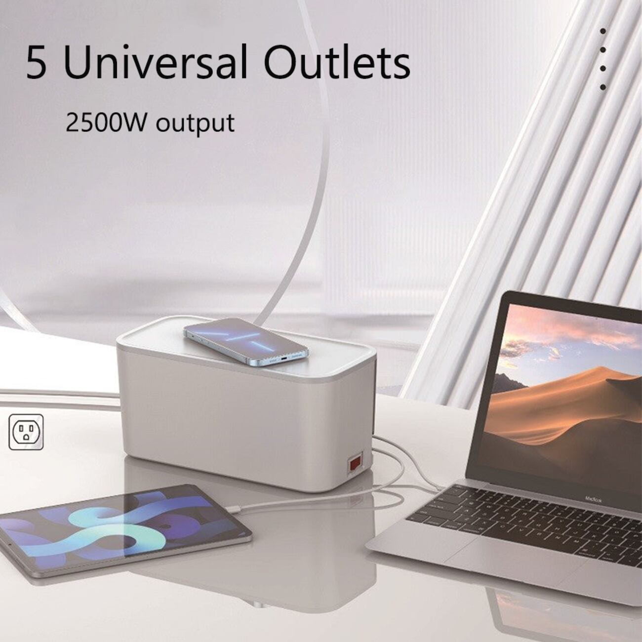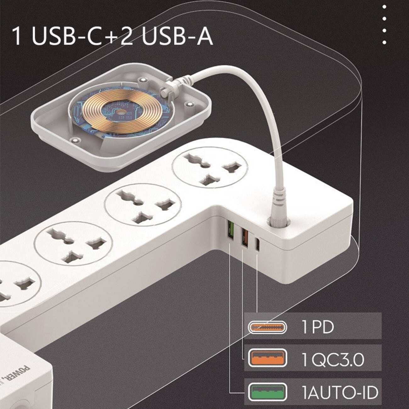 عبارة عن صندوق داخله توصيلة فيها 5 مداخل عالمية ، يعني ثلاثية وتقدر توصل عليها اشكال بلكات ثانية.