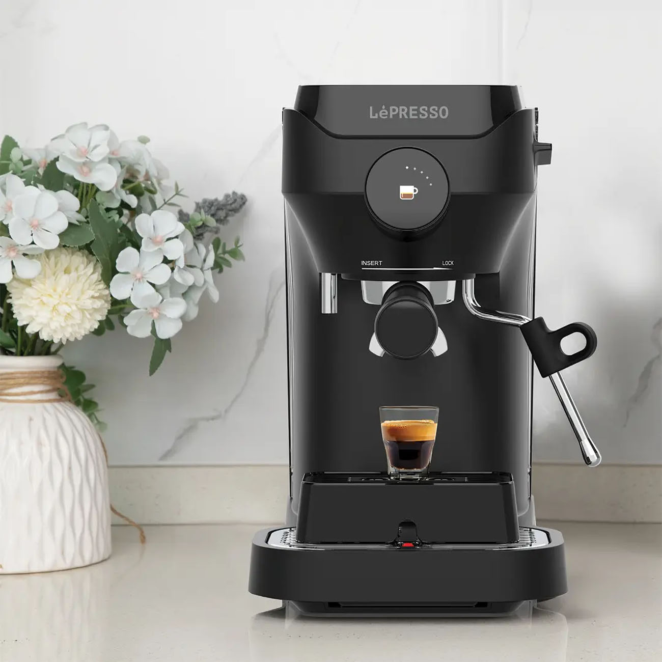 مكينة قهوة من LePresso / مكان لكوبين / مع ذراع بخار لصنع الرغوة / اسود