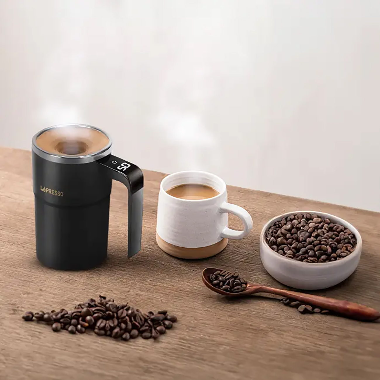 كوب متنقل مع خلاط مدمج من LePresso / سعة 420 مل / يعمل بالبطارية / ابيض