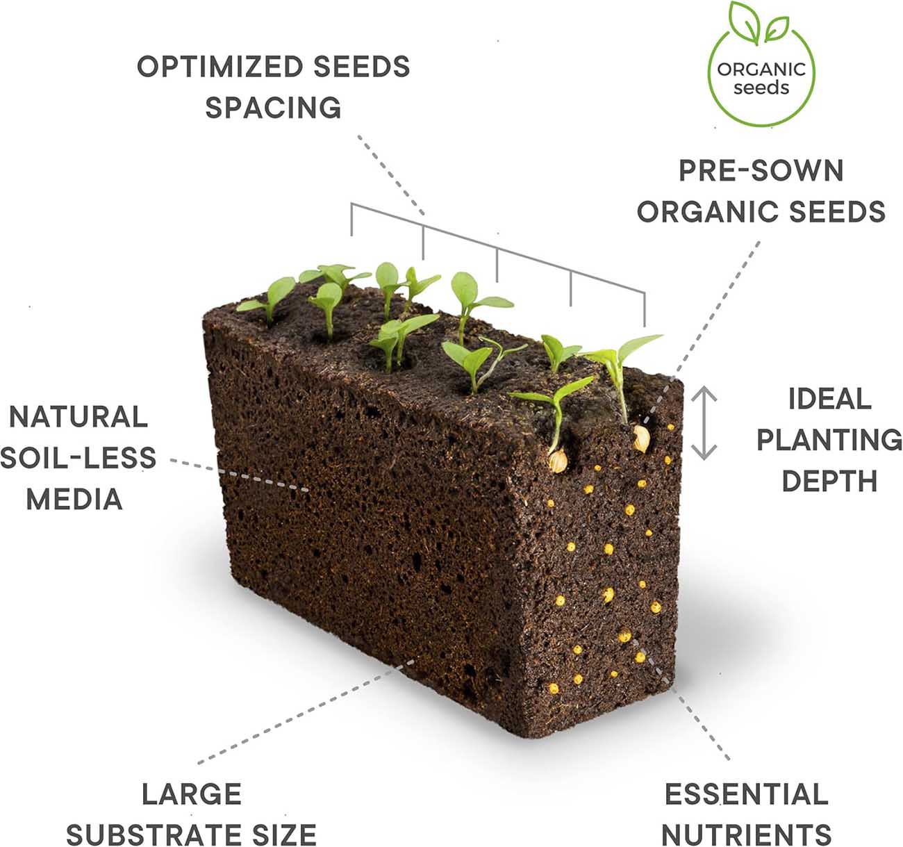 فيها تراب مجهز بعناية فيه كل المواد اللي تحتاجها النبتة للنمو من اسمدة وعناصر طبيعية تساعد على النمو.