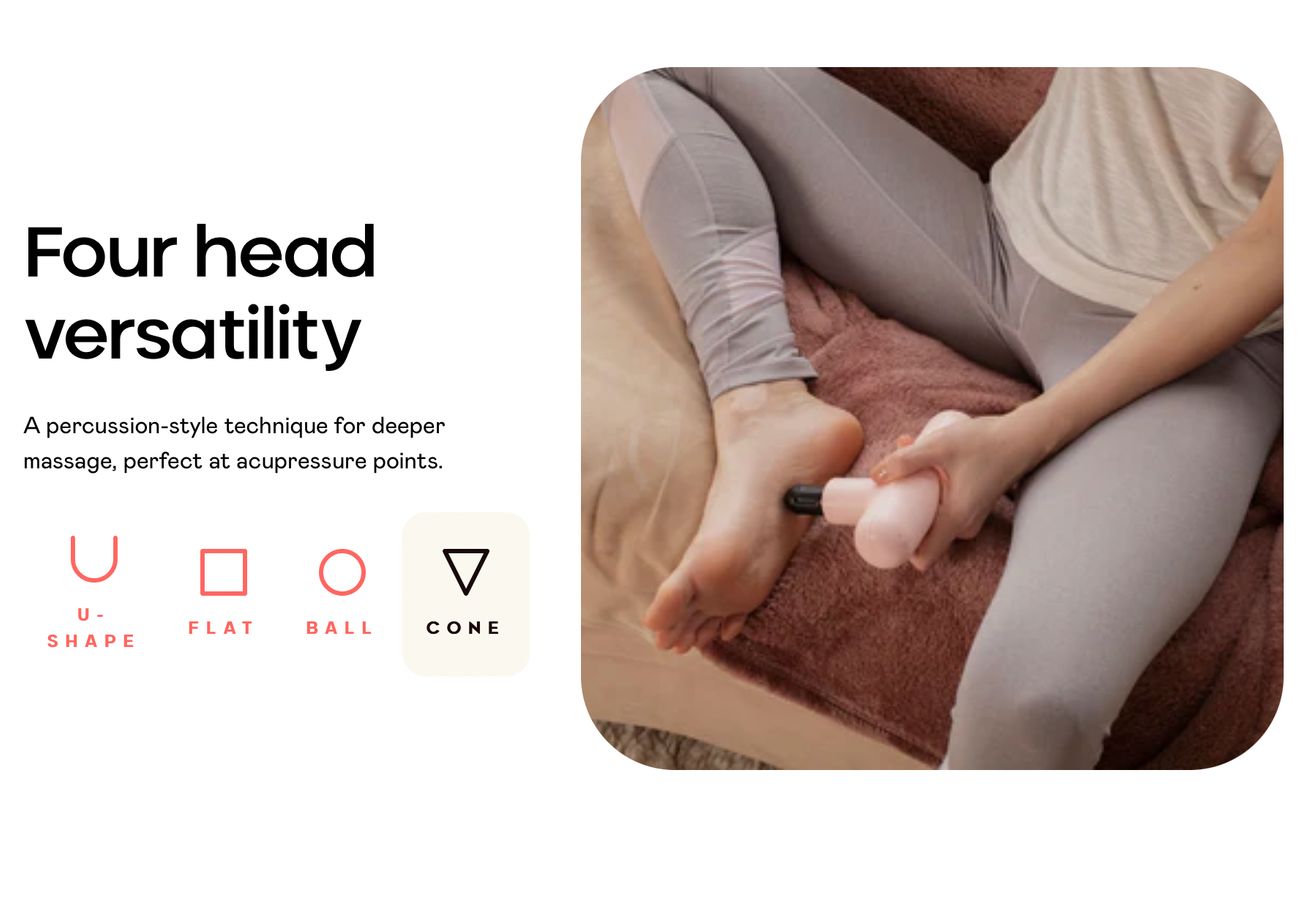 معاه 4 انواع رؤوس يمكن التبديل بينها بسهولة .. وكل رأس يستهدف نوع عضلات مختلف ، مثل ما موضح في الصور و دليل الاستخدام.