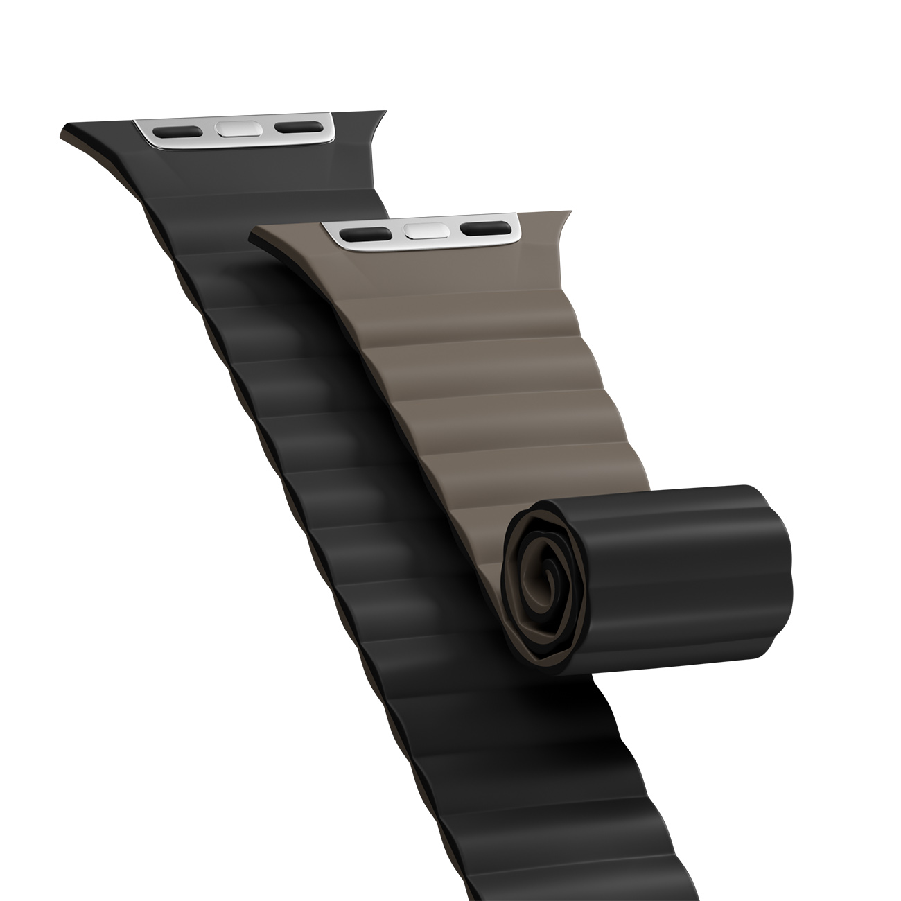 سير Skin Duo لساعة ابل من MagEasy / حجم 44 و 45 و 46 و 49 / سليكون ناعم / بني و بيج