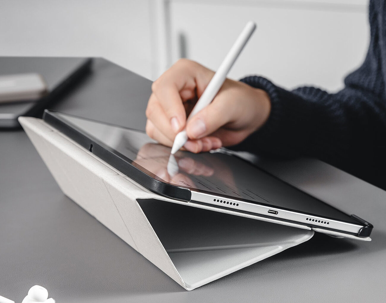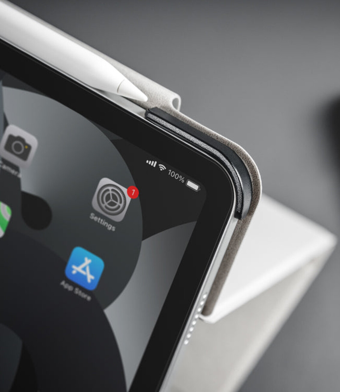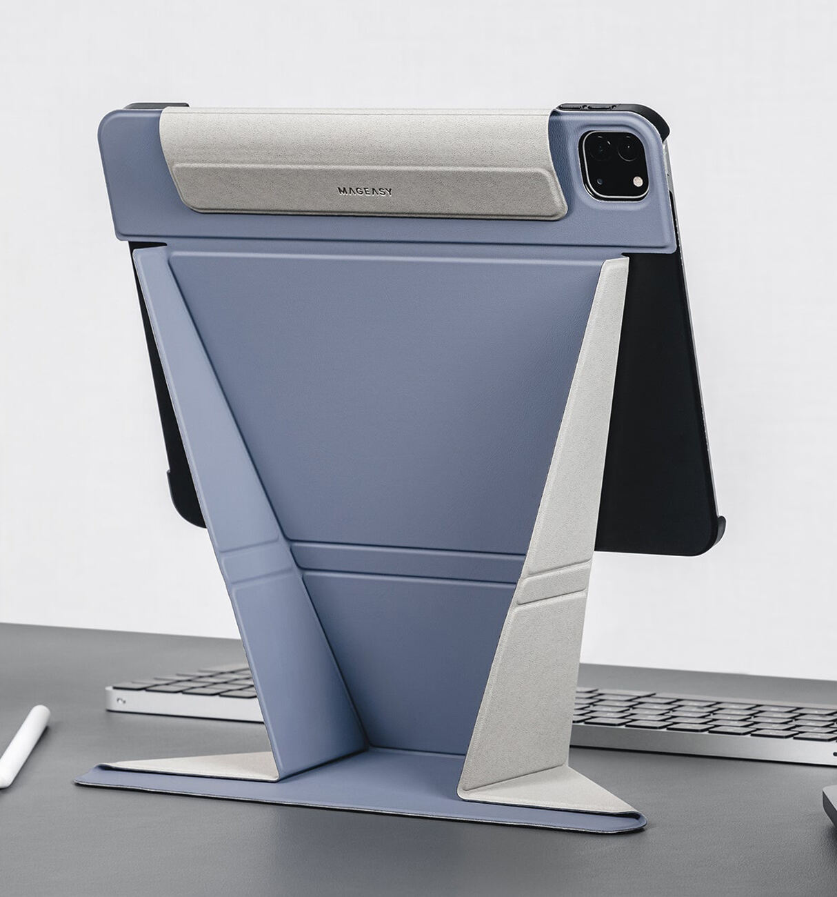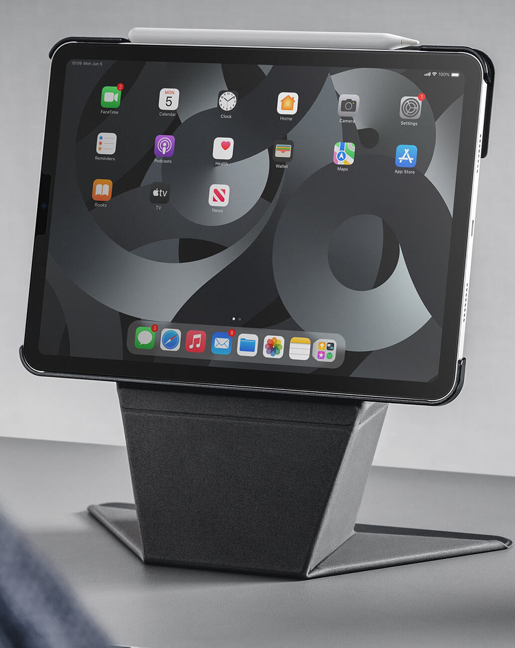 يزيد ارتفاع الايباد بحيث يكون بمستوى العين ويعطيك استخدام مريح اكثر.