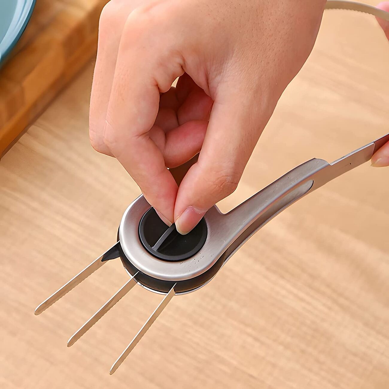 فيها شفرات اصغر لتقطيع المانجا والفواكه من الداخل بشكل أصغر.