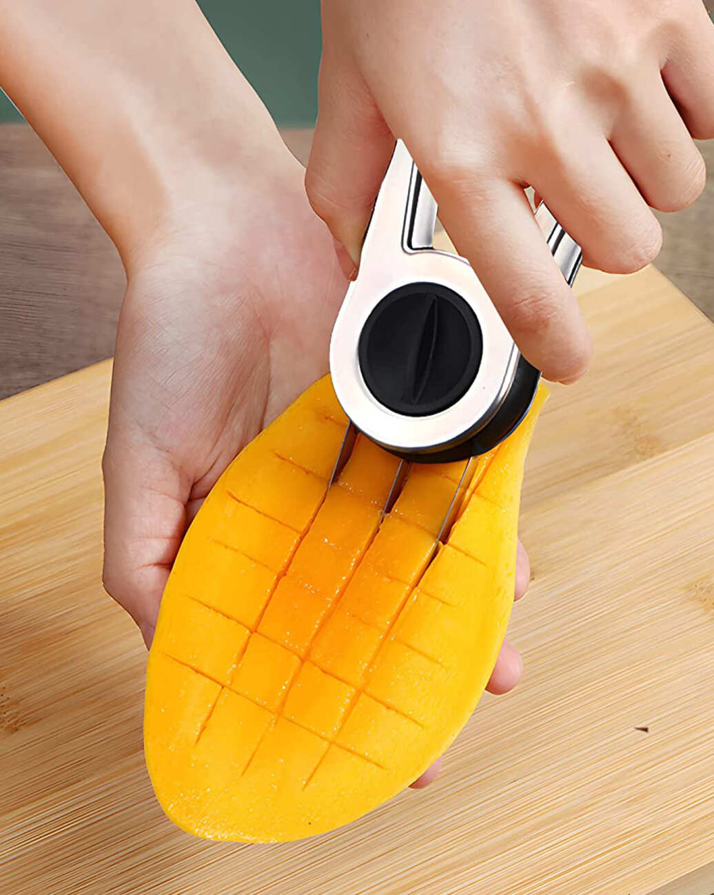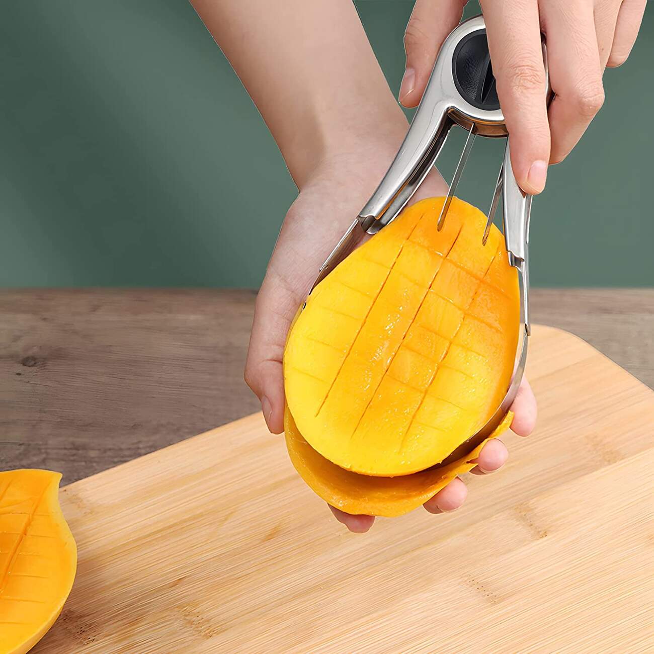 فيها شفرة مائلة لتقطيع المانجا و الفواكه لشرائح كبيرة.