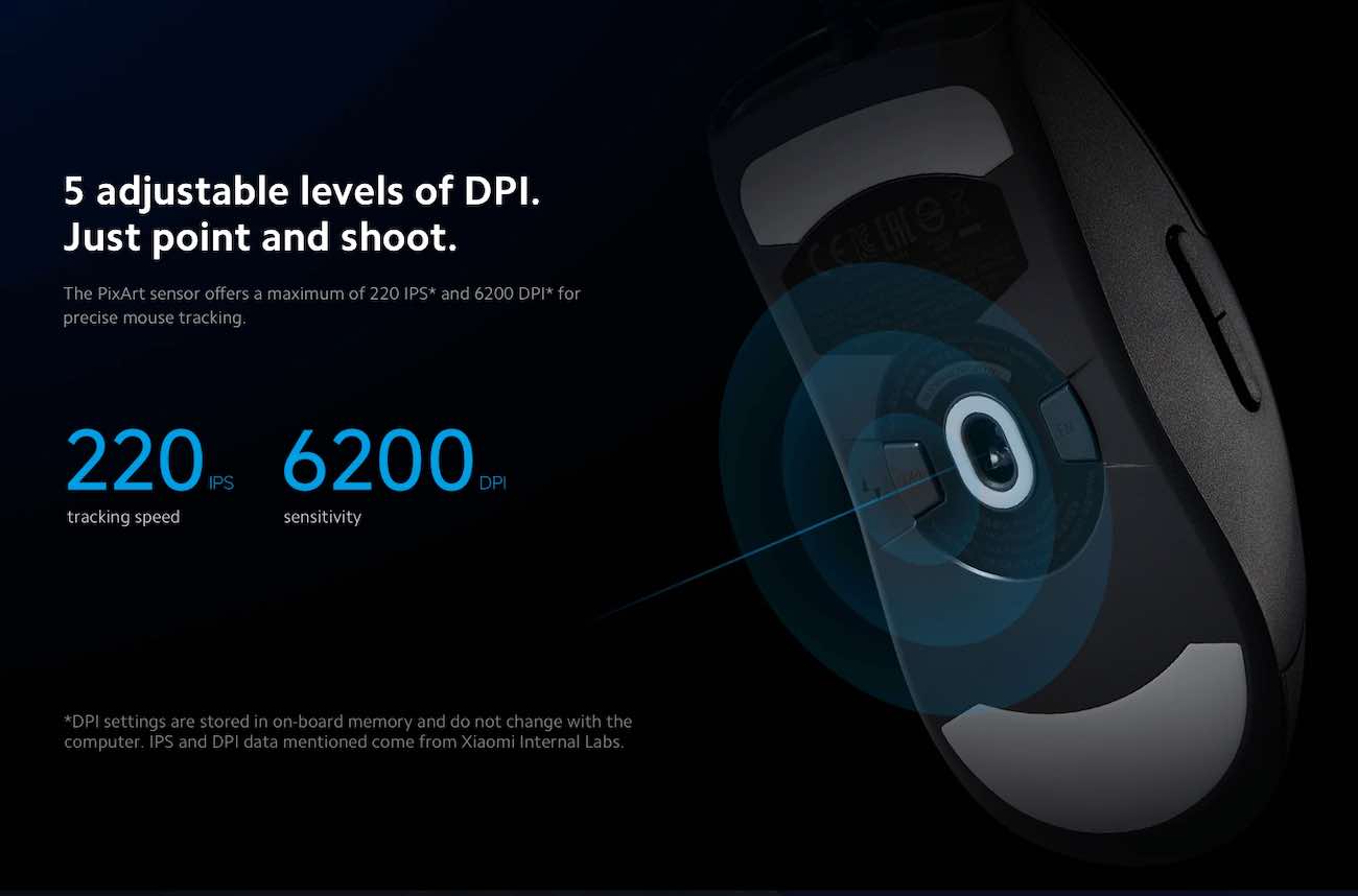 قوة حساس الماوس عالية تصل الى 6200 DPI.