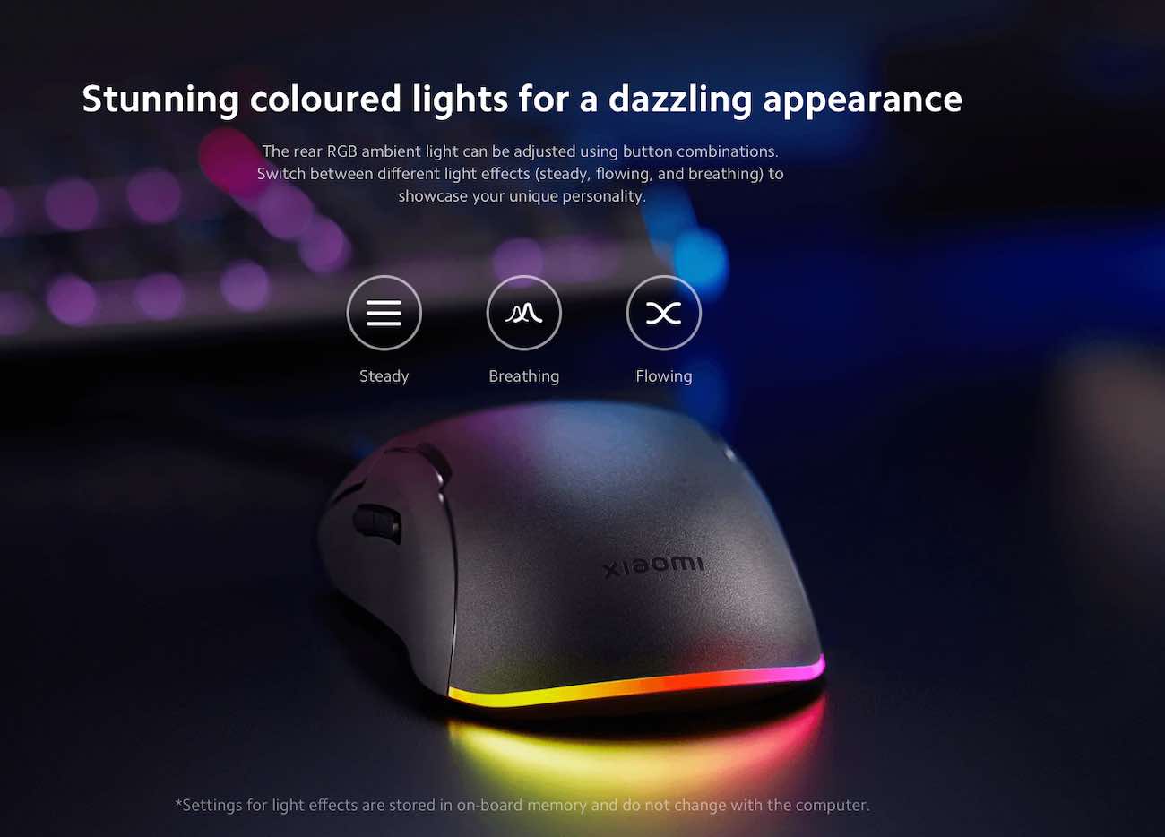 يحتوي على اضاءة RGB قابل للتخصيص تضيف جمالية واناقة للماوس.