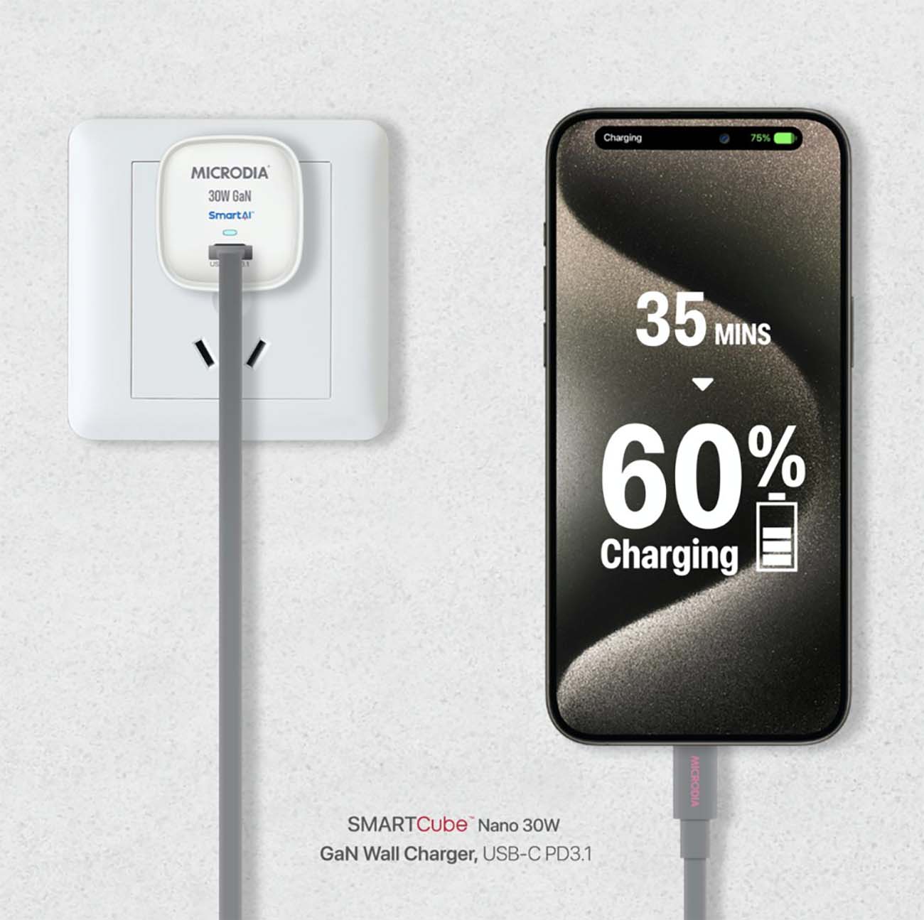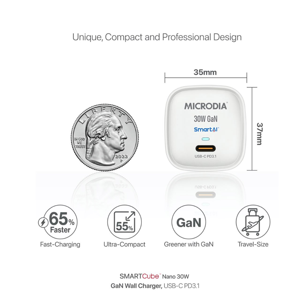 شاحن قوي مع تقنية GaN عالي الجودة من Microdia.