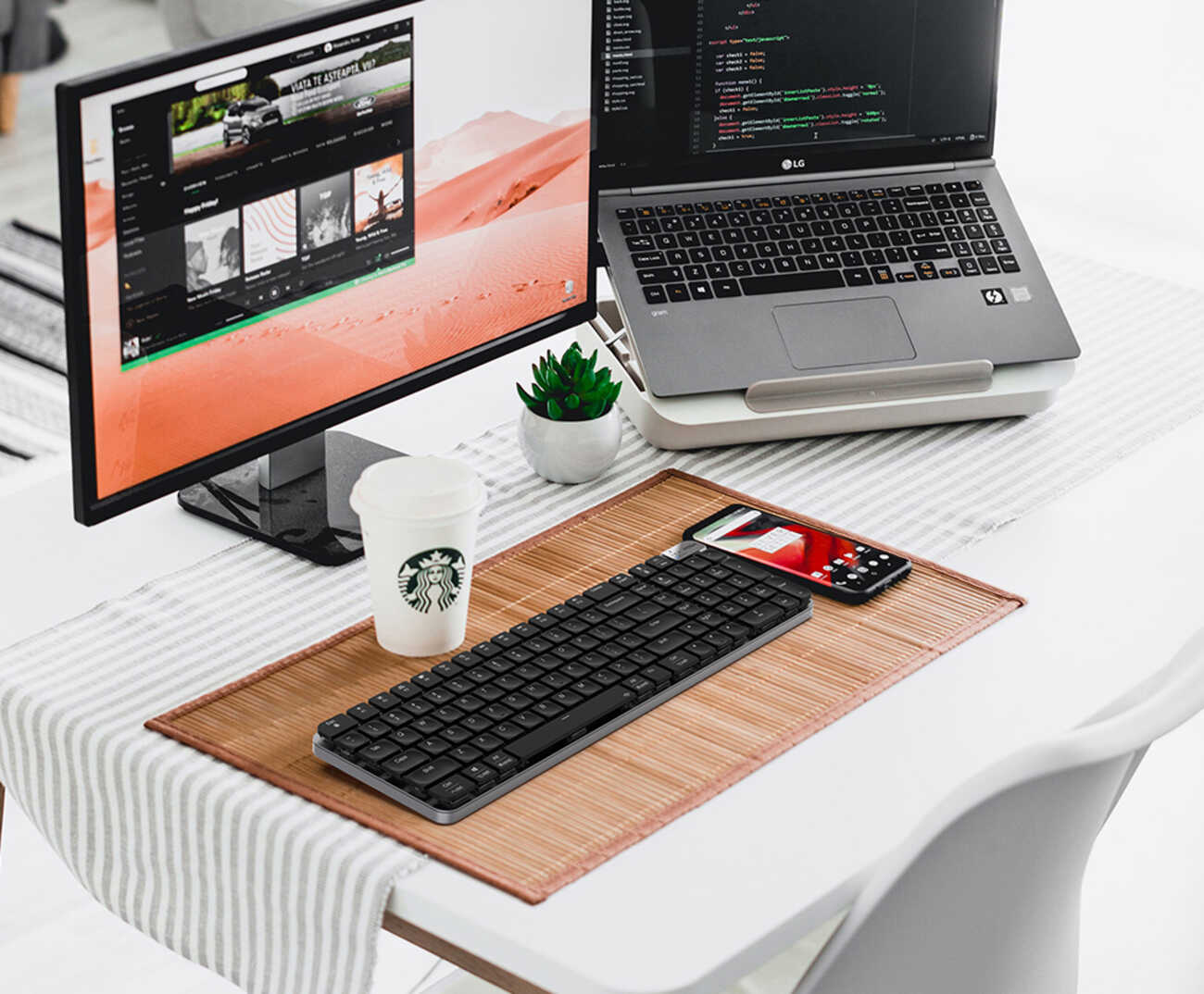 لما تخلص من جهاز استقبال ال USB تقدر تحطه داخل الكيبورد في الطرف اليمين ويثبت بشكل مغناطيسي.